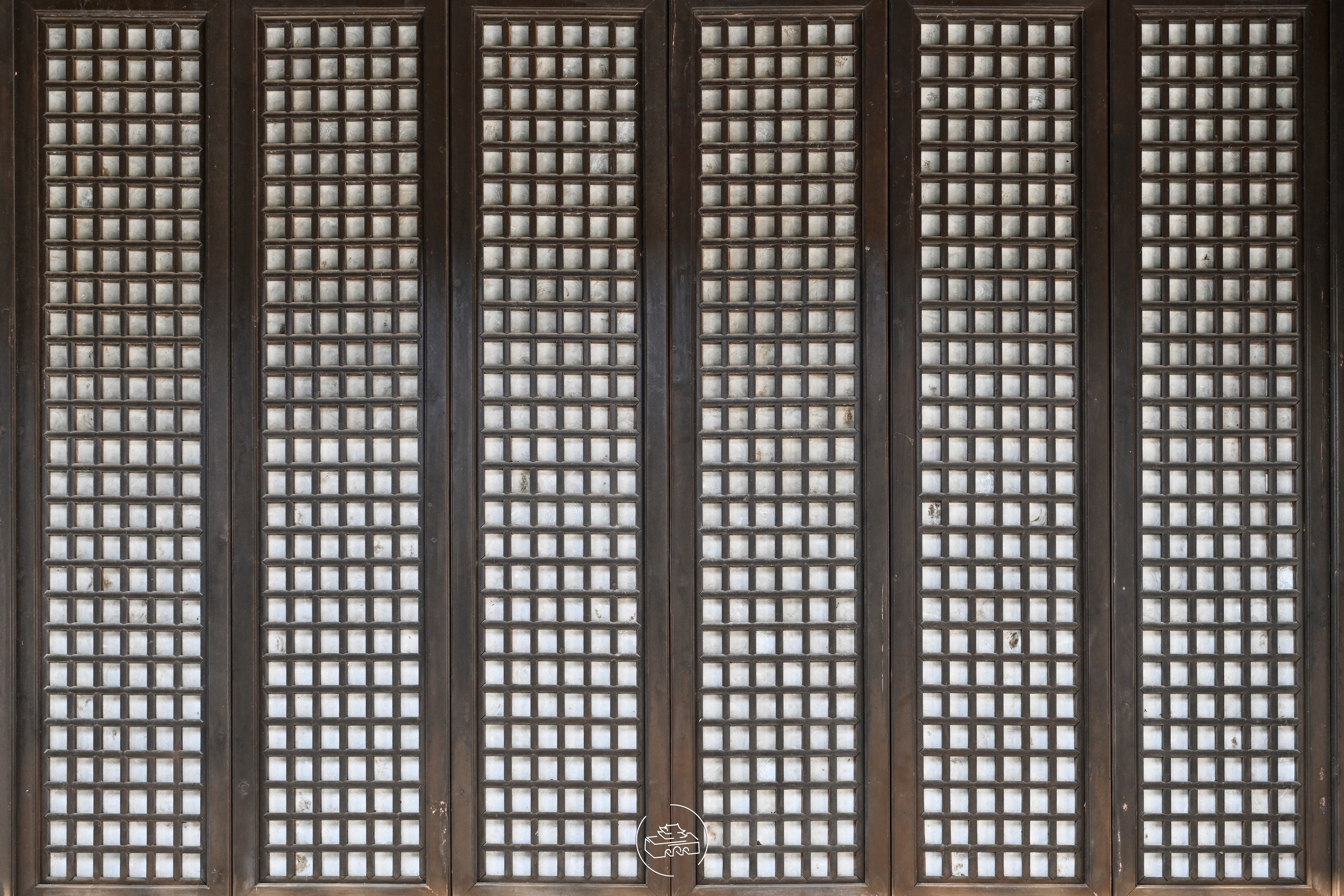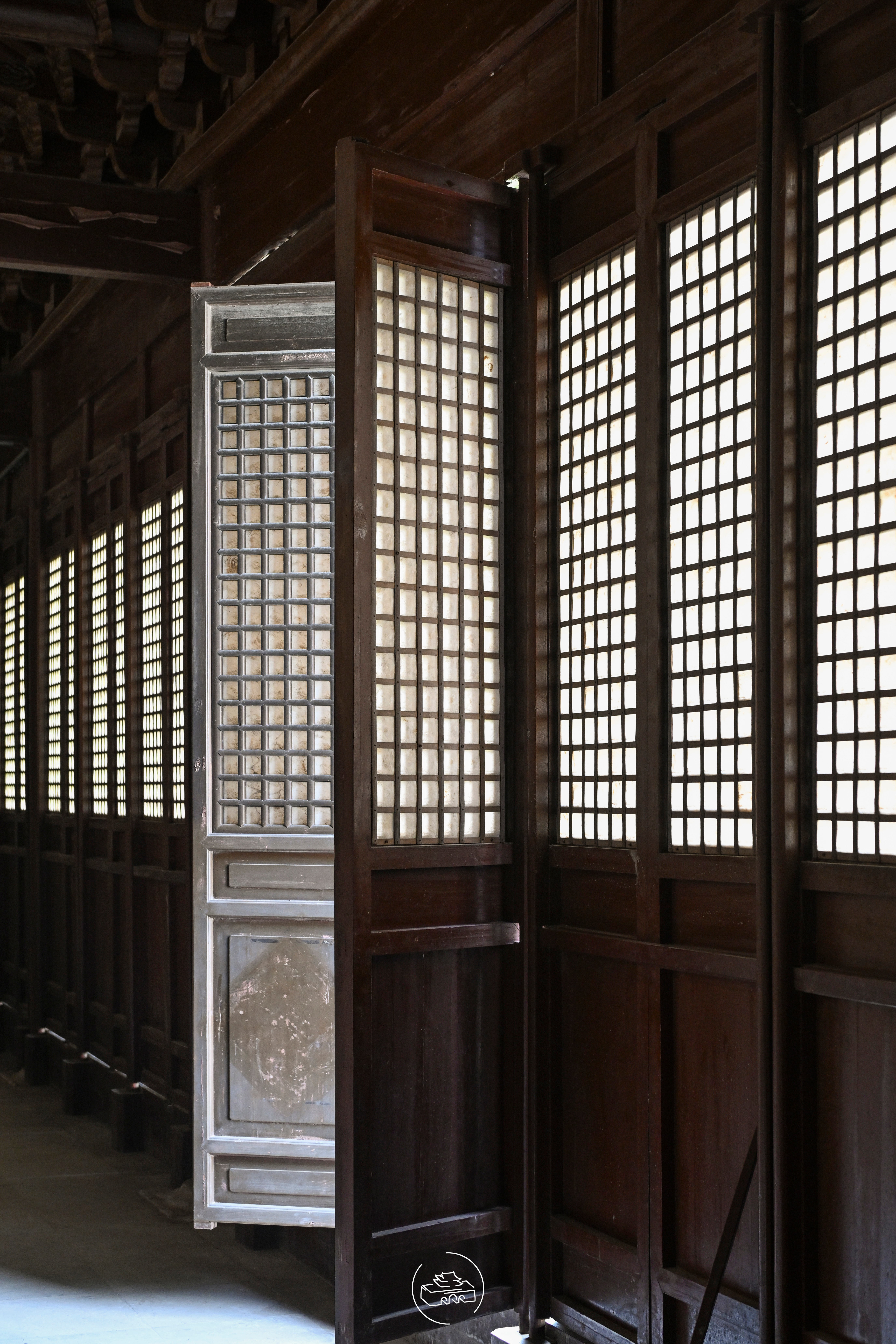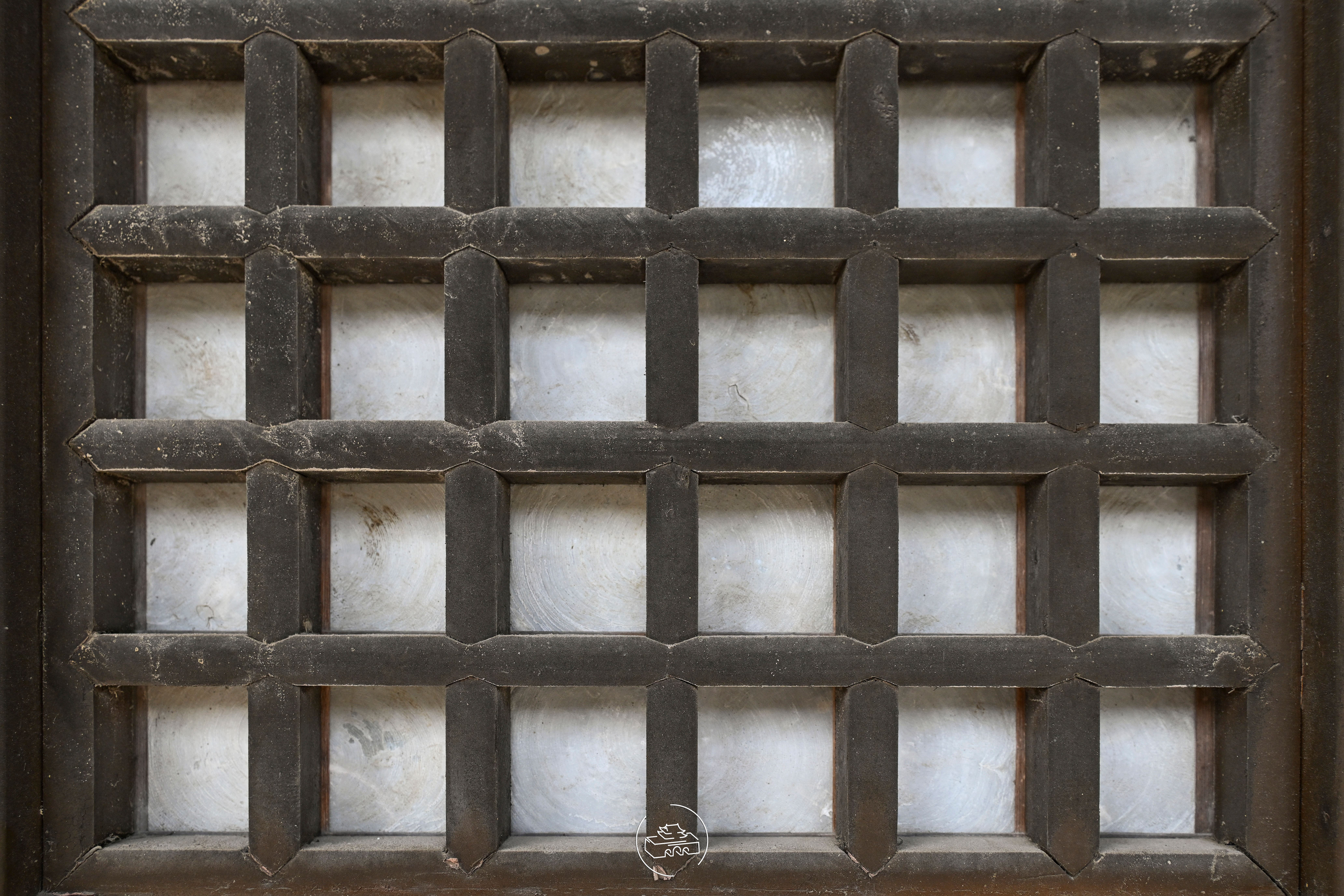 在玻璃普及前,中国人的窗户除了糊纸,还有一种更为奢侈的做法,即是使用「明瓦」。明瓦非瓦,而是以贝壳打磨或羊角煎熬压制的具有透光性的薄片。旧时,高等级的公共建筑和富户以明瓦作窗户的透光材料,其强度和效果较纸糊更佳,江南地区用量巨大,因此也形成了明瓦行业,较为人熟知的就是南京的「明瓦廊」。近现代,随着玻璃的广泛运用,明瓦逐渐被取代,原有的明瓦也被大量拆换,如今这种工艺的实物遗存并不算常见了。在扬州重宁寺,就有一套非常完整的明瓦遗留,虽然格栅门是后期修复,但明瓦为原物重新安装,蔚为壮观。