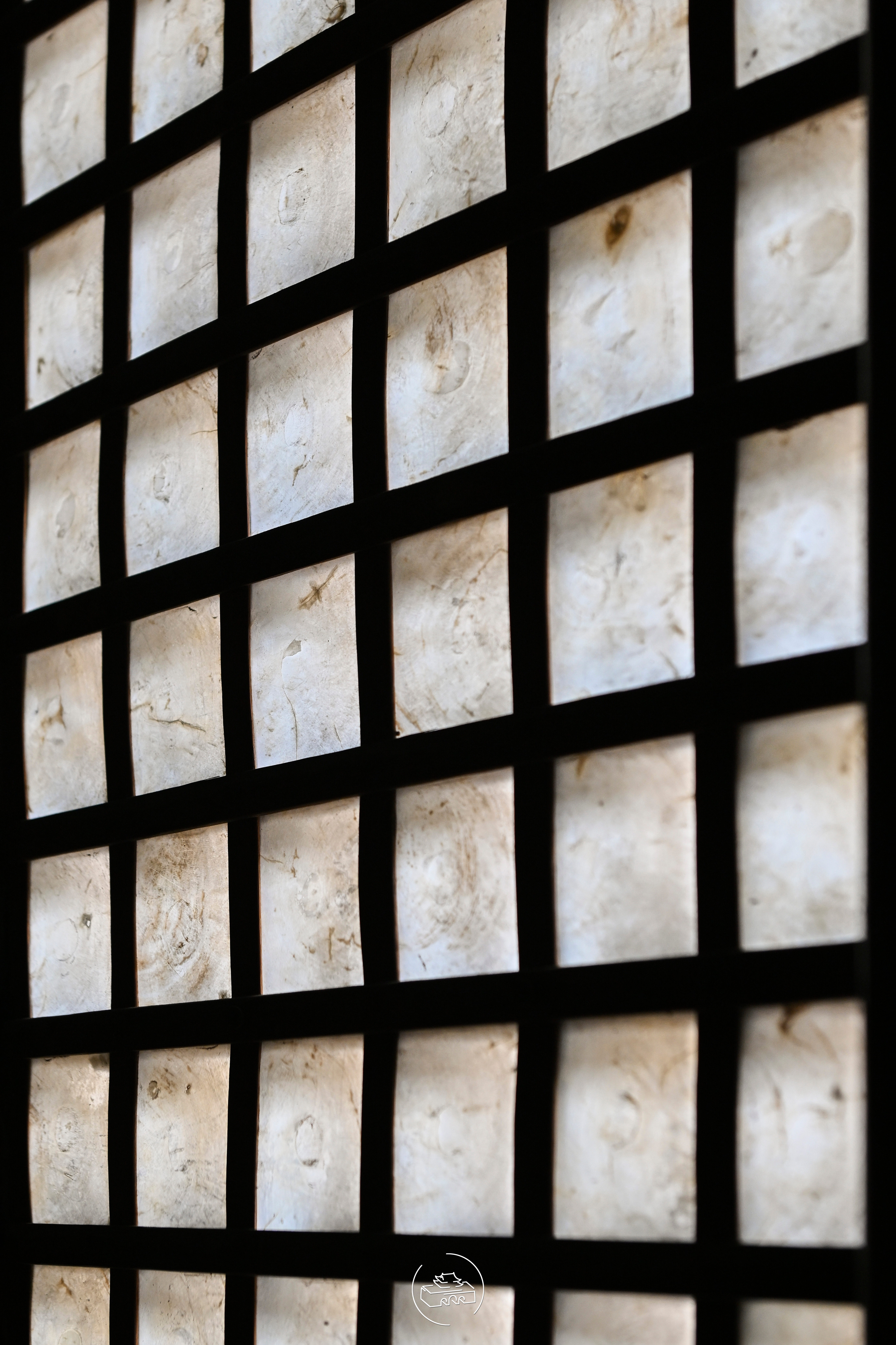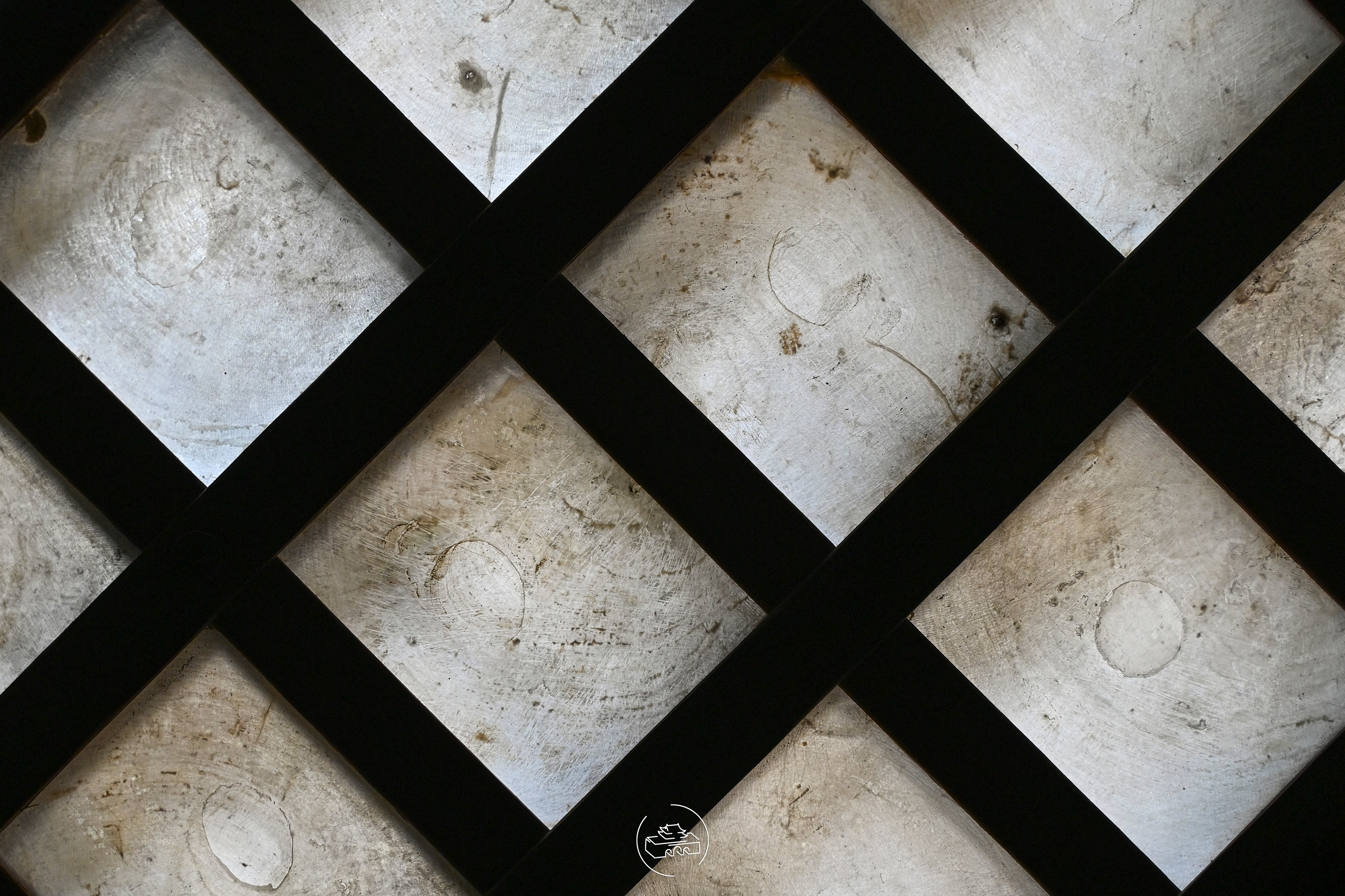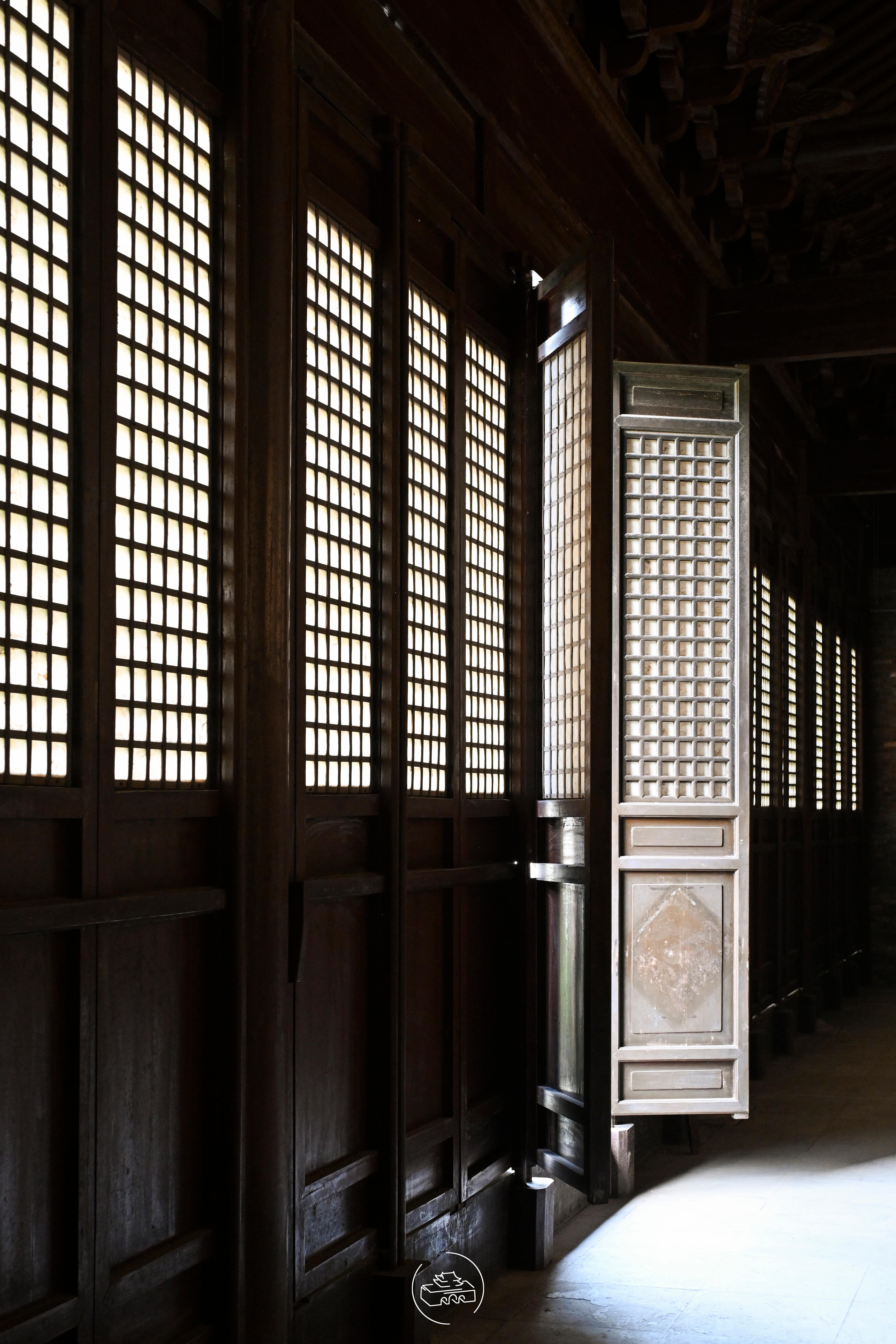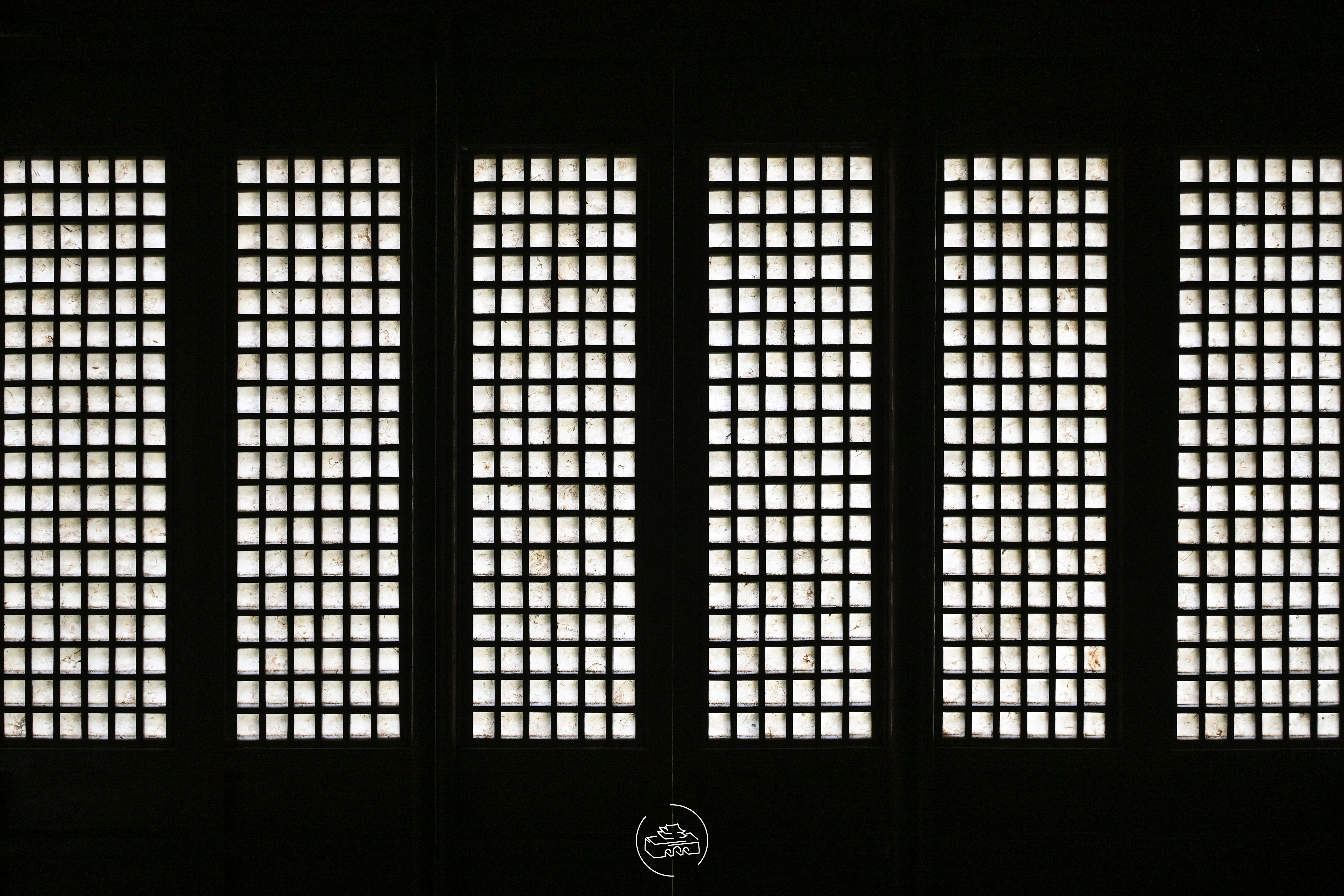 在玻璃普及前,中国人的窗户除了糊纸,还有一种更为奢侈的做法,即是使用「明瓦」。明瓦非瓦,而是以贝壳打磨或羊角煎熬压制的具有透光性的薄片。旧时,高等级的公共建筑和富户以明瓦作窗户的透光材料,其强度和效果较纸糊更佳,江南地区用量巨大,因此也形成了明瓦行业,较为人熟知的就是南京的「明瓦廊」。近现代,随着玻璃的广泛运用,明瓦逐渐被取代,原有的明瓦也被大量拆换,如今这种工艺的实物遗存并不算常见了。在扬州重宁寺,就有一套非常完整的明瓦遗留,虽然格栅门是后期修复,但明瓦为原物重新安装,蔚为壮观。