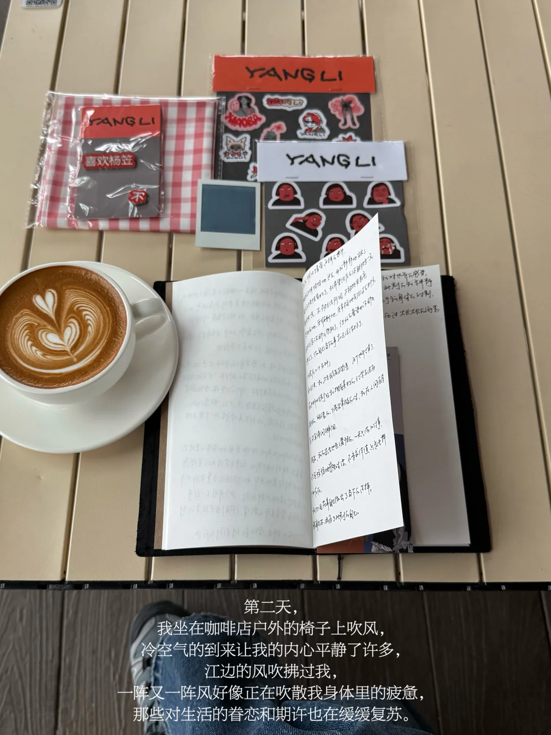 第 二天,我坐在咖啡店户外的椅子上吹风,冷空气的到来让我的内心平静了许多,江边的风吹拂过我,一阵又一阵风好像正在吹散我身体里的疲惫,那些对生活的眷恋和期许也在缓缓复苏。