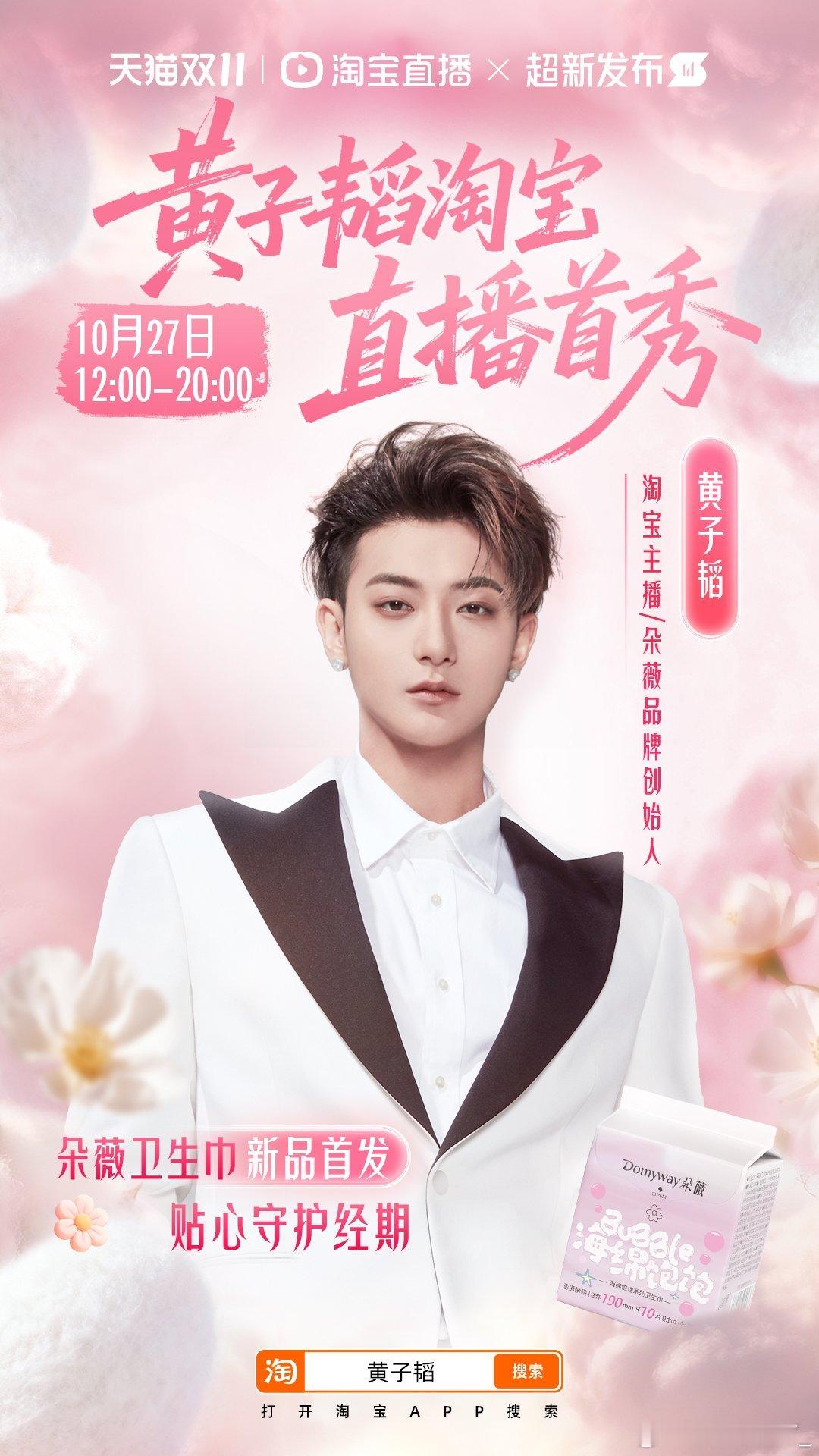 黄子韬淘宝直播首秀花1分钱抢一年快乐!黄子韬淘宝直播开播在即,预约即送千份福袋,新品不停抽免单!抓紧上淘宝搜“黄子韬”,10月27日不见不散!黄子韬来淘宝干大事儿。
