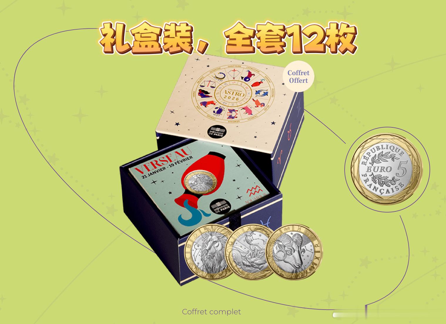 十二星座专属幸运纪念币!想要的速速上车!后天发货!巴黎造币厂出的,面值5欧元!无