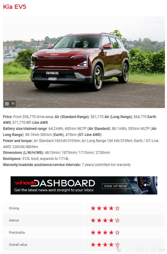 ❸起亚 EV5 - 4星