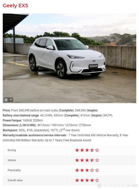 ❺吉利 EX5 - 4星