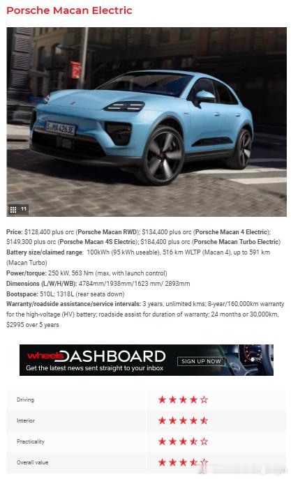 ❿保时捷电动 Macan - 3.5星