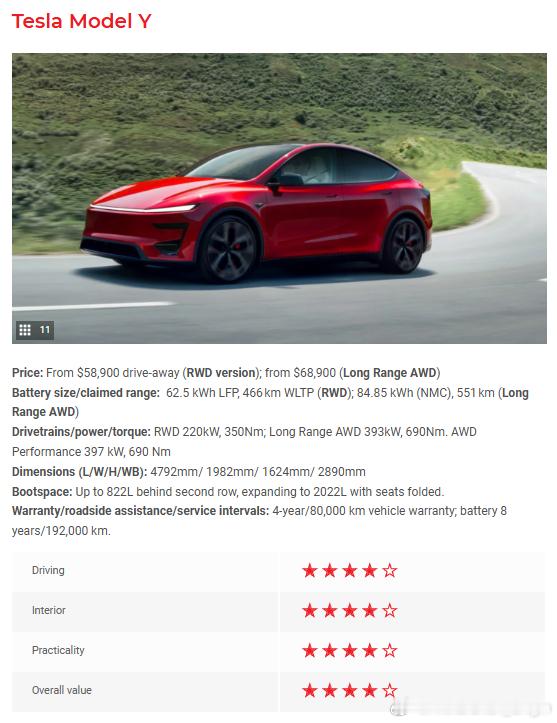 ❷特斯拉 Model Y - 4星