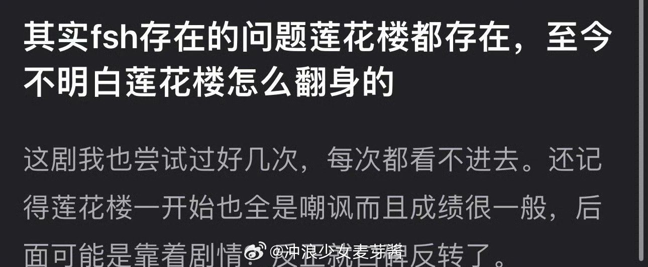 有网友问,其实赴山海存在的问题莲花楼都存在,但至今不明白莲花楼怎么口碑反转的?[思考]