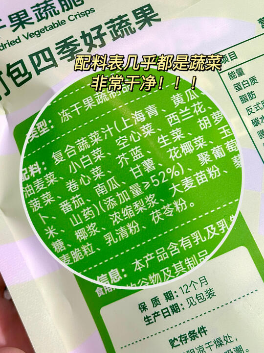 配料表前几都是蔬菜,而且非常干净!!什么乱七八糟的添加都没有