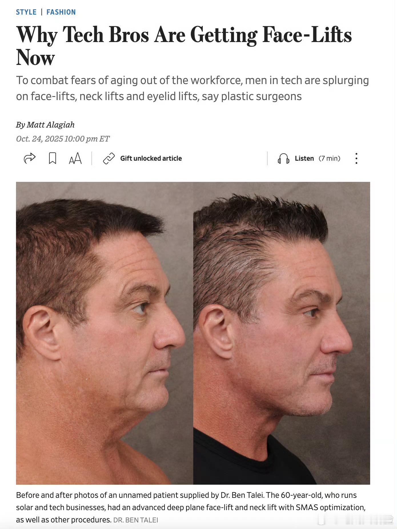 硅谷那帮科技男最近也开始扎堆做医美了,这事其实挺讽刺的。过去他们追的是创新、算法,现在追的是“年轻点的脸”。