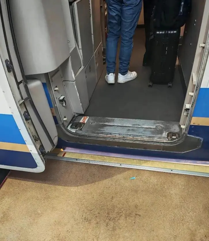 飞机廊桥或舷梯与机舱门有高差,是为了让开着的机舱门有安全间隙。如果完全平齐,就会顶到机舱门,导致飞行安全隐患。