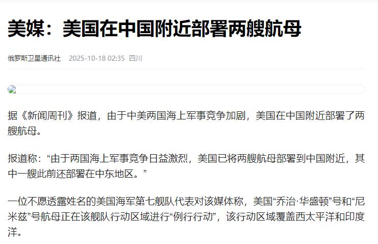 美军双航母压境,特朗普提出三大要求,勒令必须满足,中国全部拒绝!特朗普向中方提出三大要求被拒,无奈之下,美军再度使出“双航母”战术,希望逼迫中国低头,但美方显然打错了算盘。 在当今的大国博弈中,传统的力量对抗方式正在发生转变,过去,军事威慑和政治喊话是主流手段,国家间的冲突和对抗,往往通过展示军事力量或采取强硬政治立场来解决。 随着全球经济的深度融合和供应链的紧密连接,这种以军事和政治为核心的旧模式,正在逐渐失去效力,取而代之的是依赖于经济互依关系的细致操控。 近期的国际摩擦,尤其暴露出这种变化的深刻性,表面上看是施压的策略,实则暴露了美国和欧盟各自的脆弱性。 美国的要求背后,不仅有国内豆农库存的历史性积压,还有国防部因稀土短缺对F-35战机生产线的焦虑,甚至还反映了应对阿片类药物危机的艰难局面。 同时,欧盟一些国家在对华采取强硬立场时,也遇到了自己经济利益的掣肘,德国的大众和宝马,法国的奢侈品产业,以及葡萄酒行业,都对中国市场依赖甚深。 这使得任何针对中国的统一制裁,都显得格外困难,最终,这些经济利益与政治压力的矛盾,导致了政策的摇摆不定,言行不一致。 这种情形表明,当今最有影响力的力量,并不是单向的威胁或军事行动,而是根植于全球经济网络中的深度相互依赖。 这种相互依存创造了经济层面的制衡机制,例如,中欧之间的贸易往来,尤其是中欧班列的密集运行,都表明了各国经济,在某些方面已经形成了难以割裂的紧密联系。 因此,传统的军事行动显得愈发笨拙,例如,2019年美军派遣两艘航母进入西太平洋,试图通过强势姿态对中国施加压力,但这一举动未能达到预期的效果。 中国不仅通过卫星全程跟踪美军动向,还在东海同步展开了军事训练,这种军事平衡的变化,意味着在经济深度交织的时代,单纯依靠军事力量已不再是最有效的手段。 任何激进的行动都伴随着巨大的反作用,且可能损害本国利益,造成反噬。 在这场博弈中,控制那些具有高度不可替代性的战略资源,往往能形成决定性的非对称优势。 以稀土和大豆为例,稀土作为“工业黄金”,广泛应用于制造F-35战斗机、电动汽车、导弹系统等关键领域。 中国掌握了全球九成的稀土精炼产能,而美国在这一领域的短板则相当明显,中国通过对稀土出口的管控,成功将其作为一个战略杠杆,确保了在这一领域的主导地位。 相较之下,美国试图用大豆作为贸易武器的策略则没有成功,大豆是可以替代的商品,尤其是中国在短时间内,就将大豆采购转向了巴西和阿根廷,几乎完全绕开了美国。 这不仅使得美国的施压策略失效,反而给美国农民带来了巨大的损失,导致大豆库存积压到了历史新高。 这个对比清晰地表明,战略杠杆的有效性不仅取决于商品的市场地位,还取决于商品的不可替代性。 因此,未来的大国博弈胜负手,已经不再是单纯依赖军事力量或政治口号的展示,而是基于对新型影响力的精准理解和运用。 在这一过程中,任何简单的施压都可能暴露自身的脆弱,而经济共生和互依则成为稳定关系的关键,掌握具有非对称优势的战略资源,能够在博弈中提供至关重要的空间。 从长远来看,国际关系将越来越多地围绕着全球供应链的韧性、关键技术的自主性以及战略资源的控制展开。 那些能够理性评估彼此经济依赖关系,平衡利益并守住合作底线的国家,将能够在这场复杂的博弈中稳步前行,获得持续的优势。 这是对当今国际力量格局变化的深刻反思和精准把握,远比单纯的军事对抗更具战略意义。 信源:俄罗斯卫星通讯社