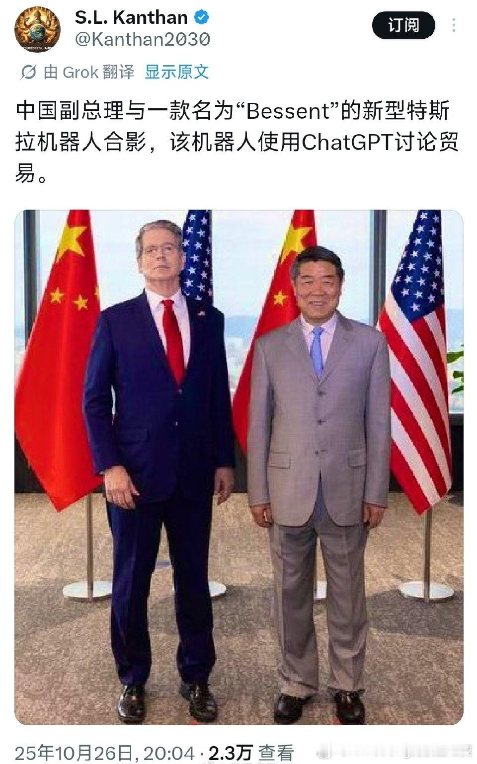 贝森特的站姿被吐槽为像机器人中美在马来西亚经贸磋商