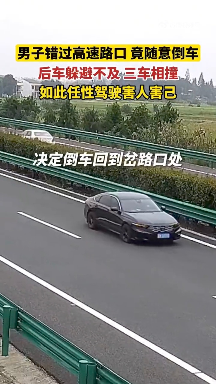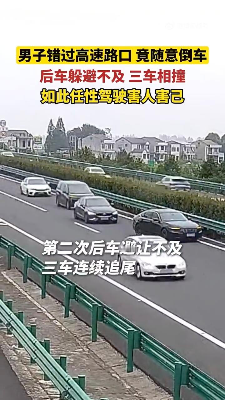 男子高速倒车致3车相撞