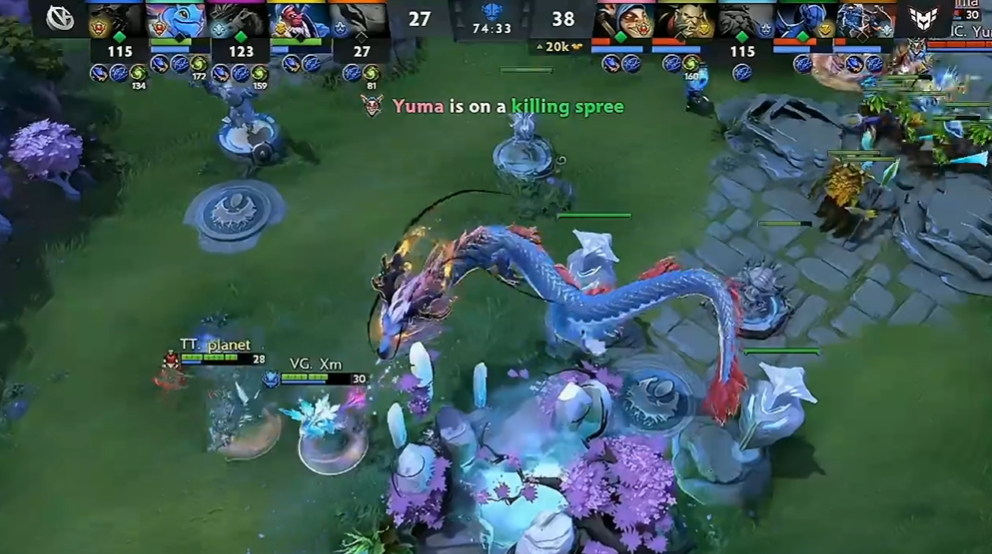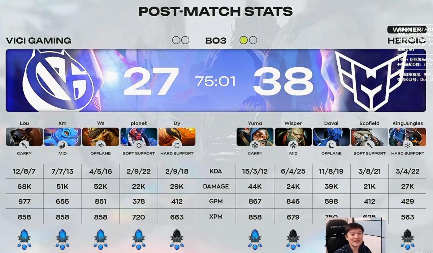 究极长痛,VG第一局因双大哥冲动追击导致两个买活死遭Heroic一波输掉比赛,这把Xm帕克有点隐形了,大后期没能站出来