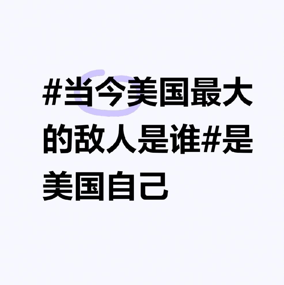 当今美国最大的敌人是谁?我觉得就是它自己。国防部都说了,美国军费冠居全球还逐年加码,2025财年国防预算高达8952亿美元,这充分暴露其好战成瘾、霸权扩张的本性。2001年以来美国对外发动战争和军事行动,造成数十万人死亡,数千万人流离失所,在祸乱世界的同时也在加速反噬自身。 也有人觉得是日本,毕竟日本今年防卫预算达9.9万亿日元,且对美国既有依赖又有深仇。但根本问题还是在美国自身,其霸权行径、穷兵黩武才是把自己推向困境的主因。