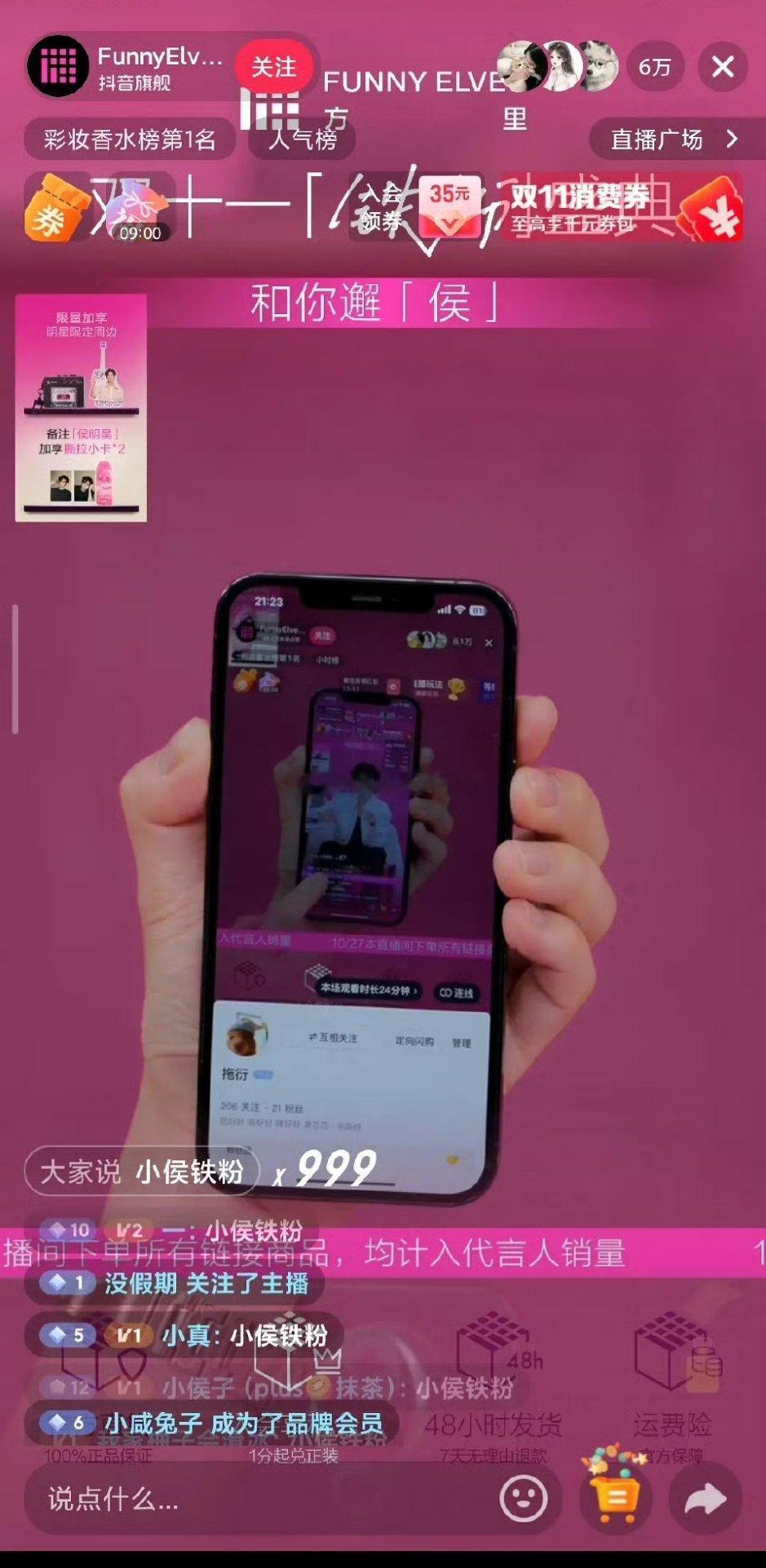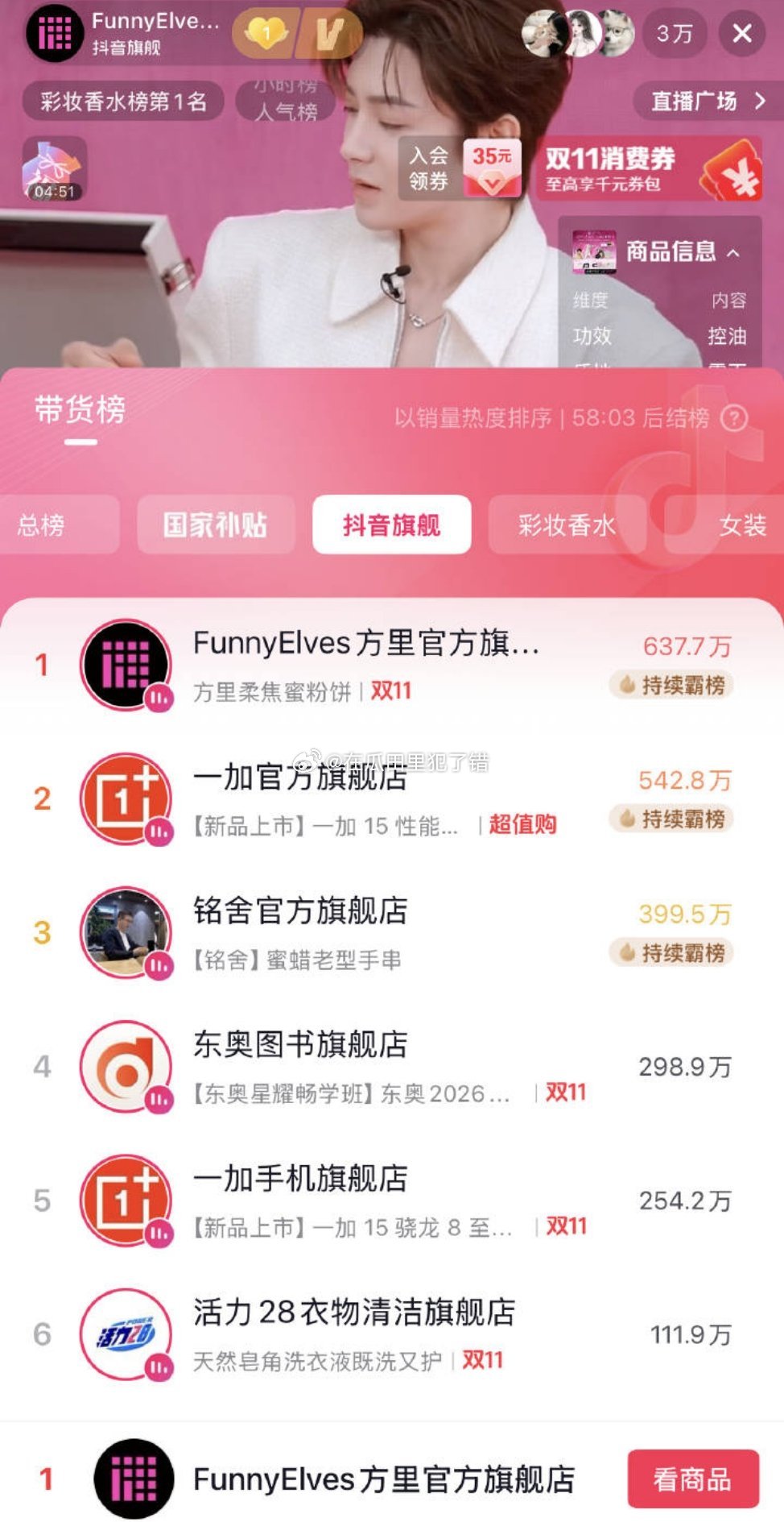 侯明昊昨晚直播23分钟6万人,销售额637万,总榜第一!入青云有效播剧了!