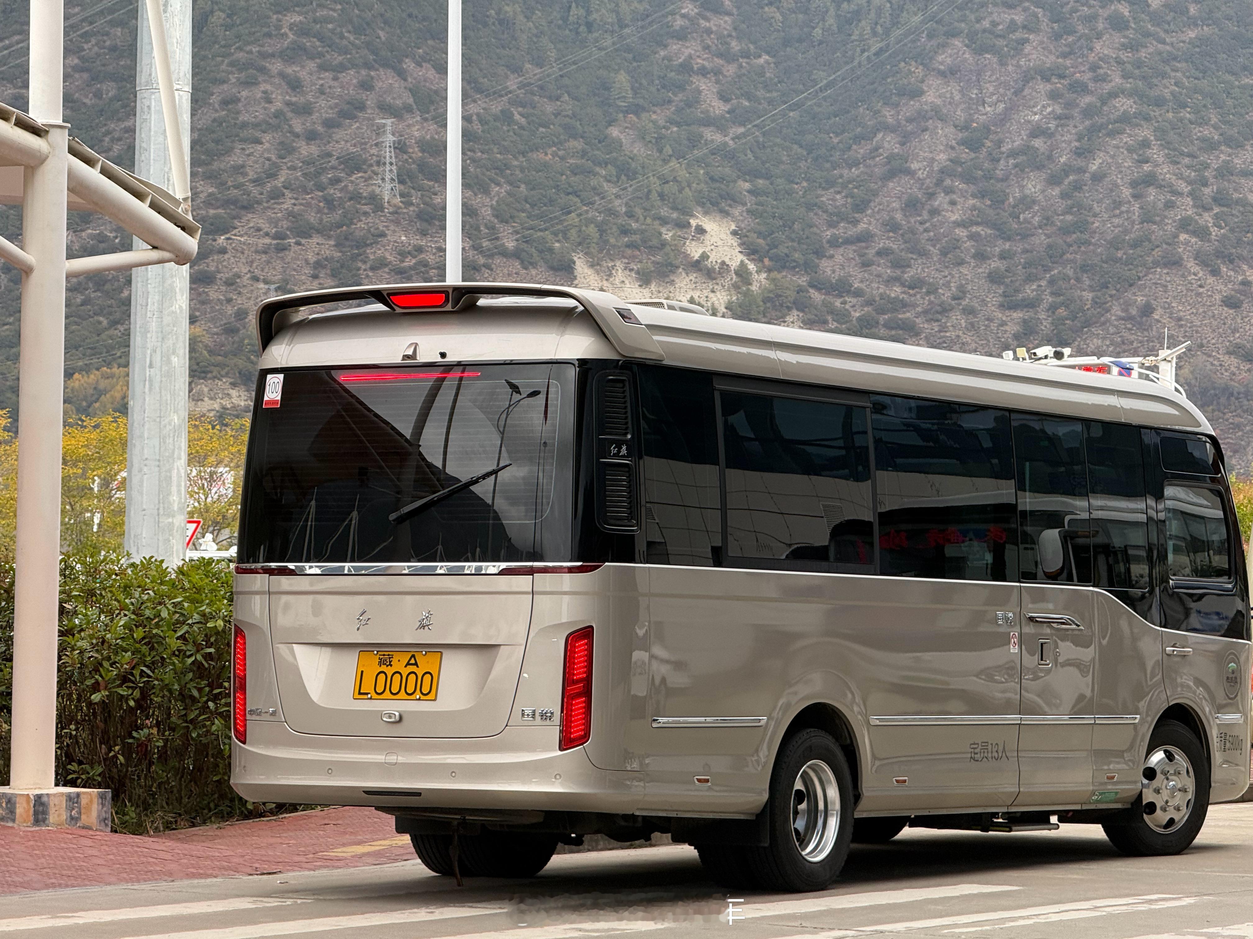 林芝机场看到的接机大巴,红旗国悦这前后轮毂有点帅啊
