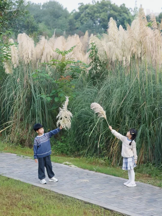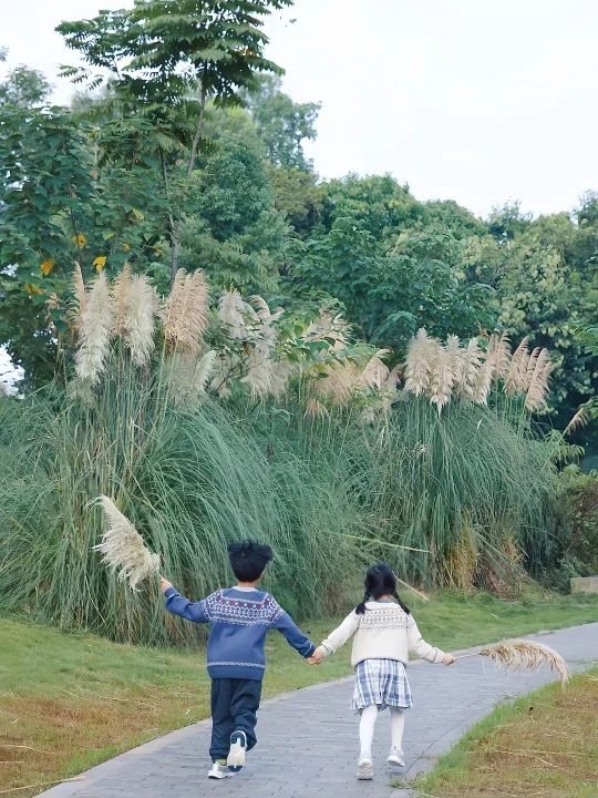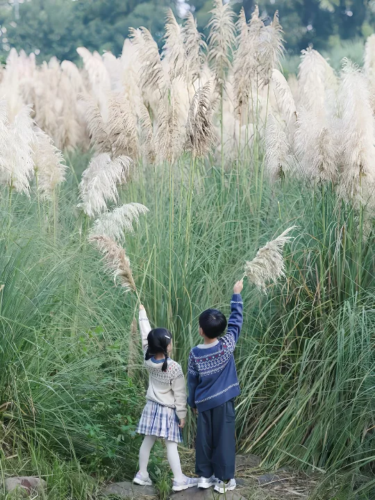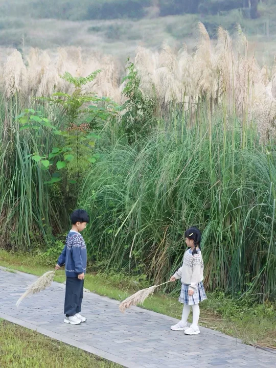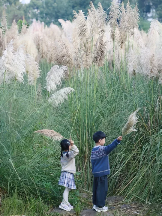 ✅芦苇比较高,小朋友又太矮了,我们可以站在对面的草坡上去俯拍,这样才能拍出一整片芦苇荡