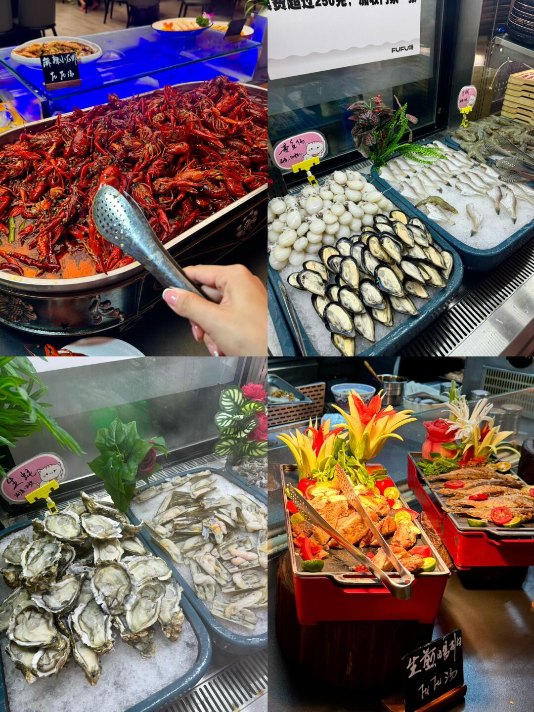 ✅ 最期待的海鲜自助晚餐,现切和牛🥩、生蚝🦪、小龙虾、三文鱼🍣、鲍鱼等等,以及各种烧鸟和川菜,真的是吃到扶墙出的节奏