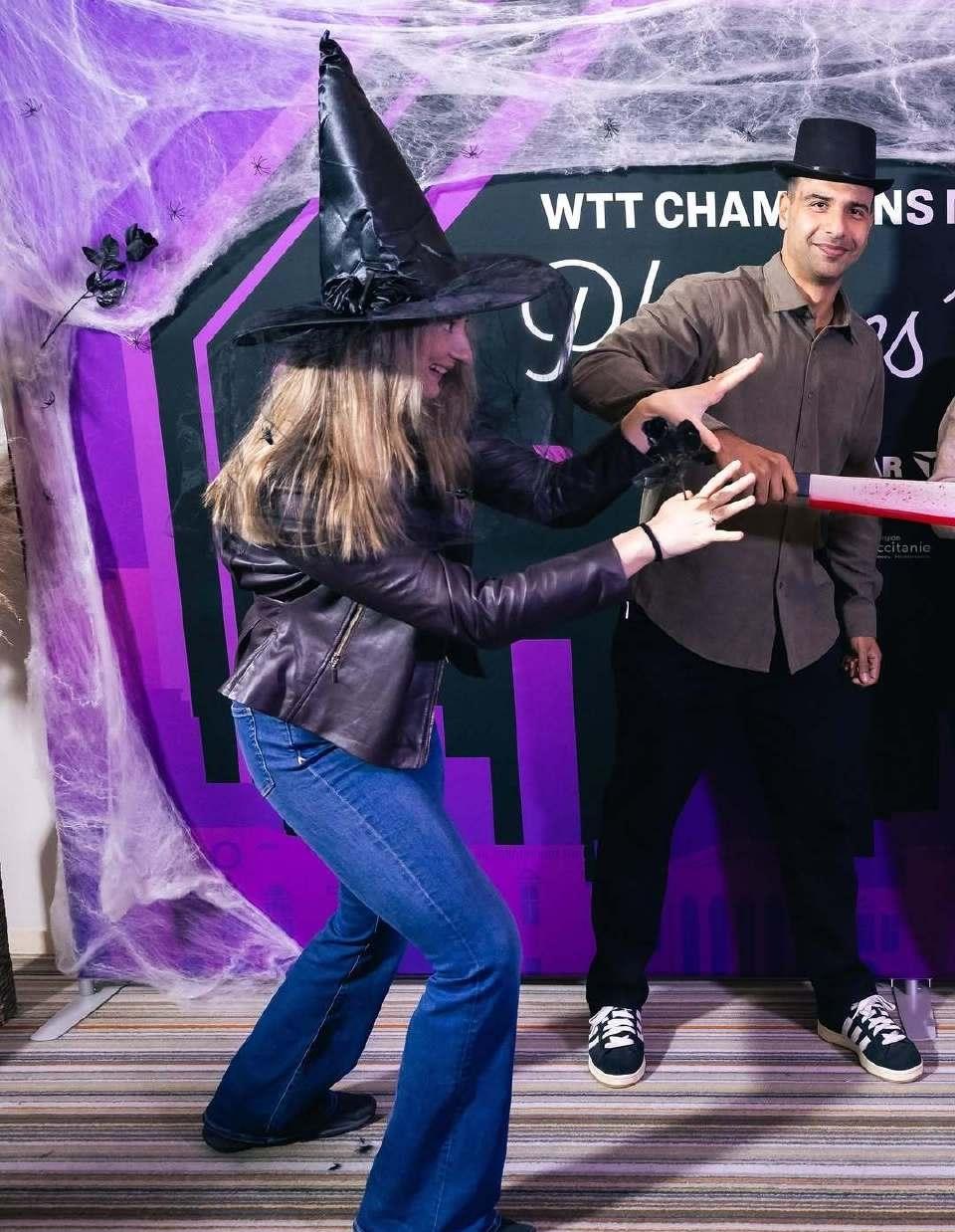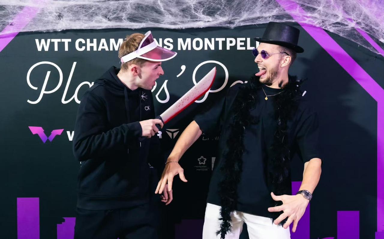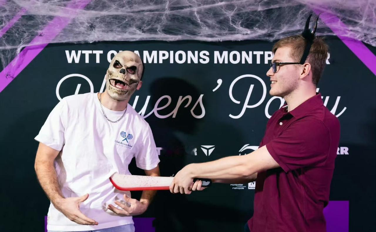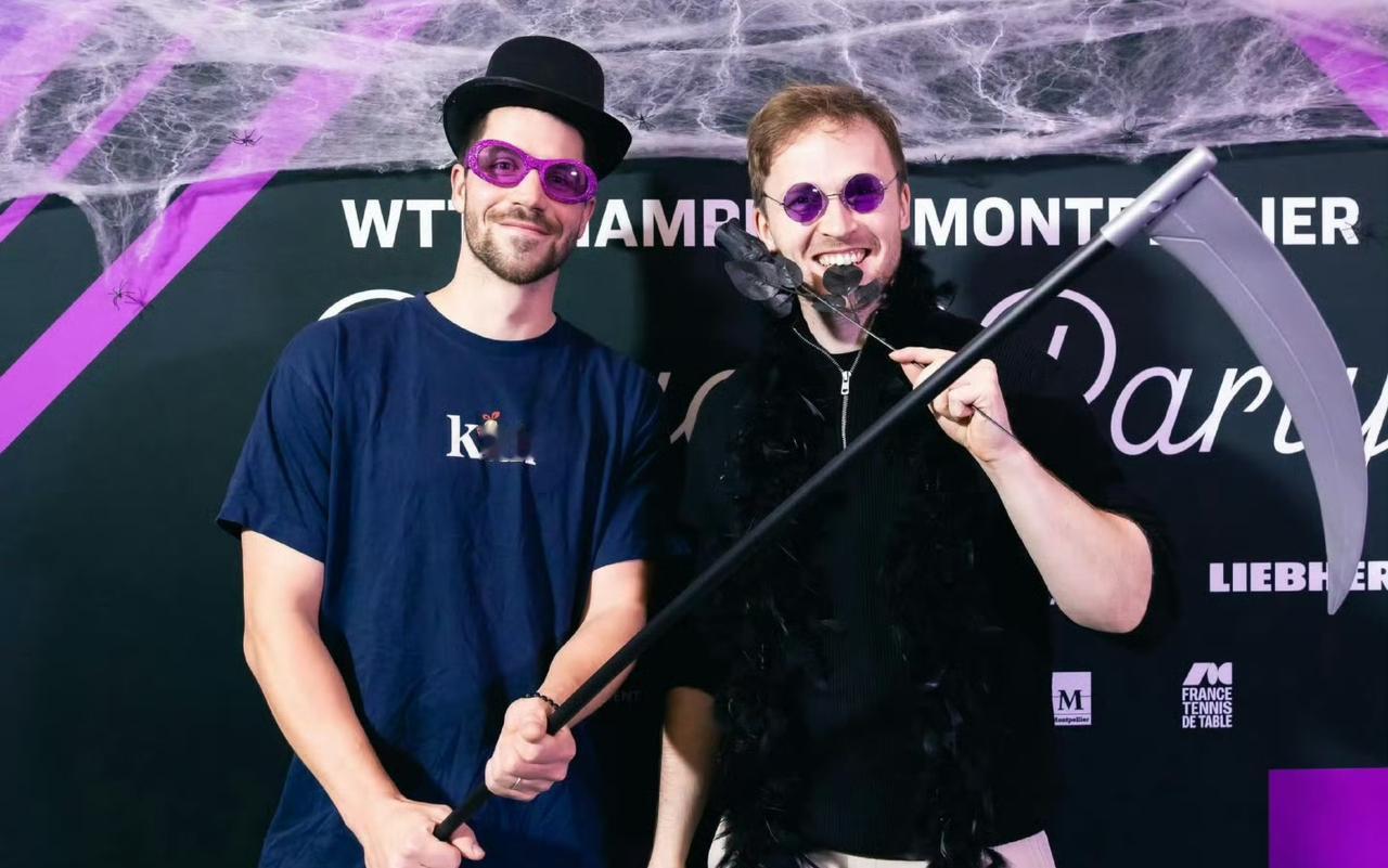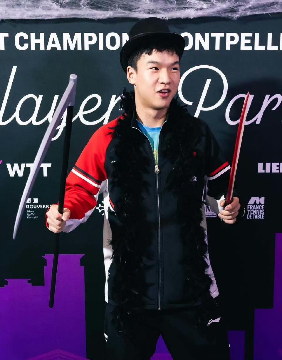 比赛之前先过个"惊魂"美妙的万圣节🎃吧[笑哭]! 在我们昨晚酣睡的时候,远在蒙彼利埃冠军赛的国乒选手们正在惊喜体验法国的万圣节party。 国乒的孩子们还是从小养成的习惯,守规矩,顶多是大迪拿把刀耍耍,蒯曼戴个女巫的帽子、托个药罐照个相,向鹏和同同就是照了个像,其他选手都没见到。 而外协会选手这是疯了一样,稀奇古怪,只有日本选手和我们一样,规规矩矩的[捂脸]。