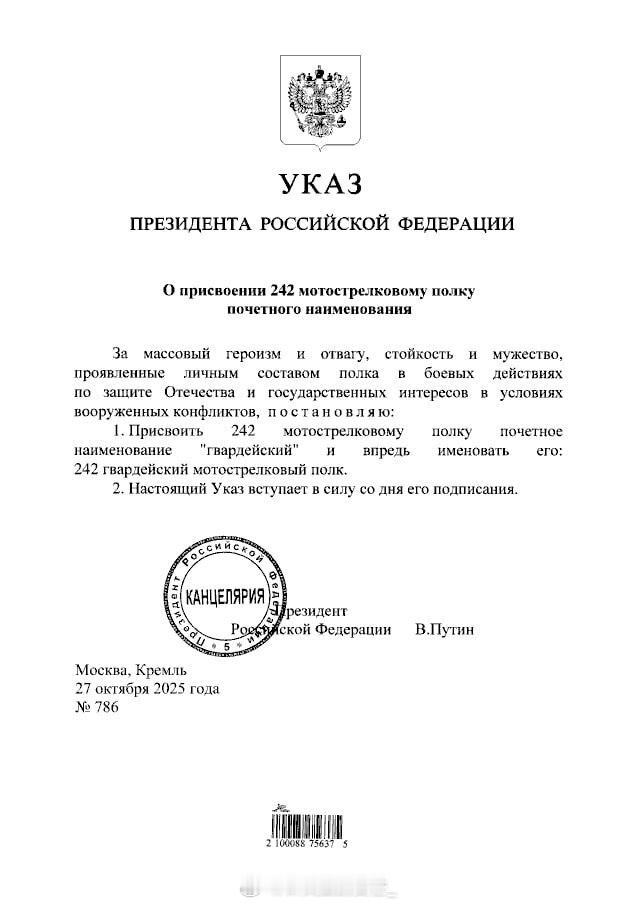 俄罗斯联邦总统弗拉基米尔·普京已签署相关命令。