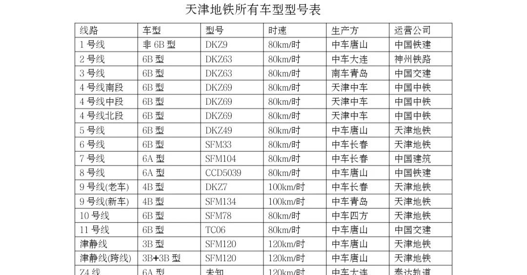 天津地铁车型表2.0 V2.0更新 1.由于颜色有争议,所以这个版本删除颜色 2.由于Z4线即将开通,所以增加Z4线。 地铁 轨道交通