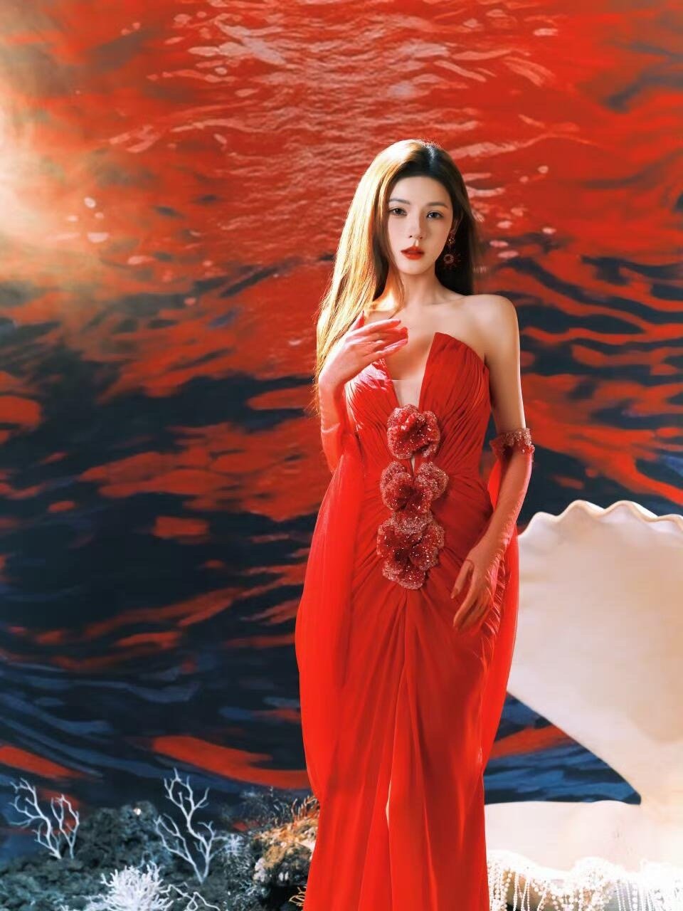 张予曦ELLE风尚大典造型,红得很鬼魅妖艳[憧憬]