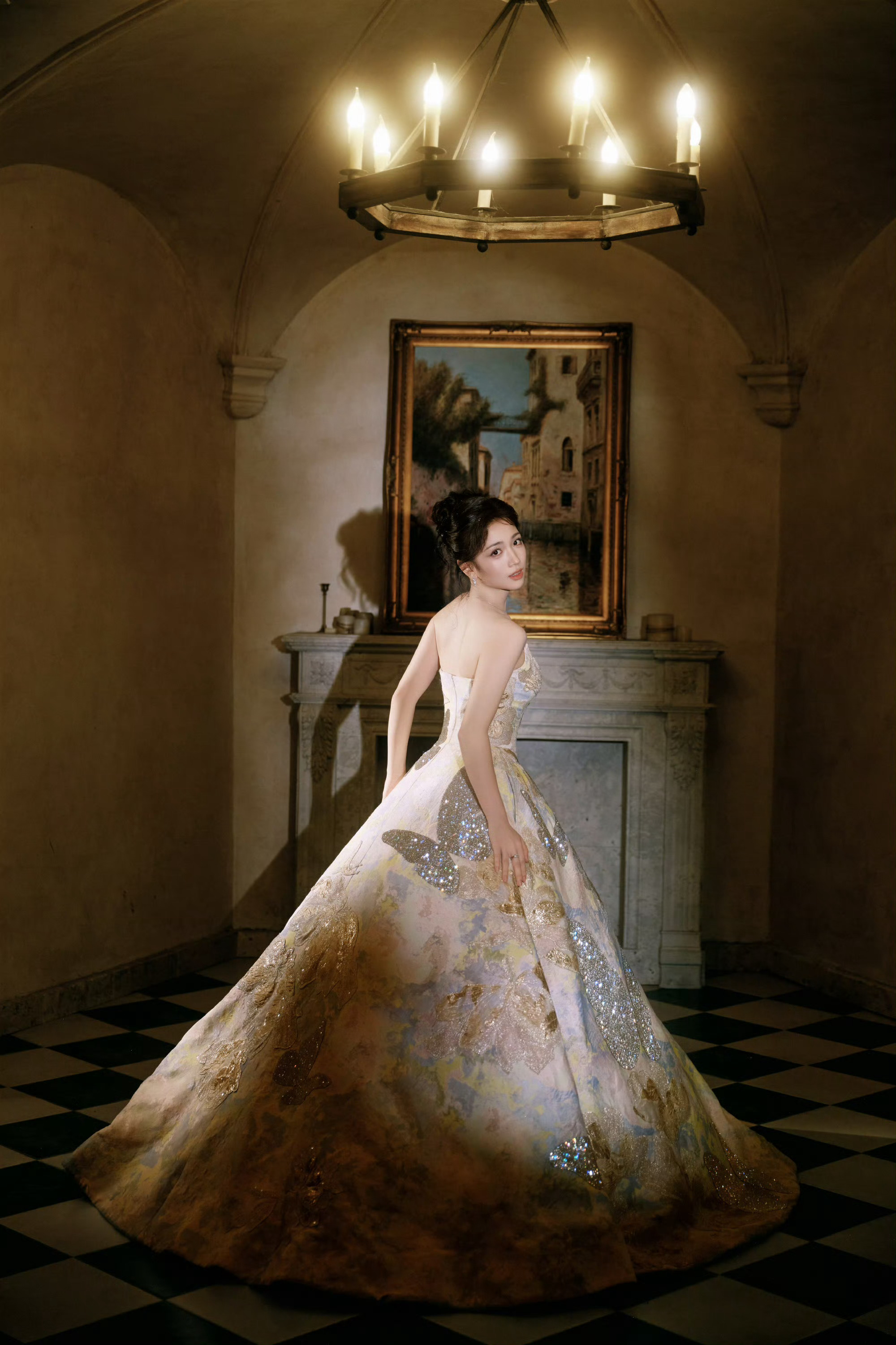 代露娃美成啥样了,这样完全就是油画🖼️走出的美女。。好美代露娃蝴蝶刺绣长裙