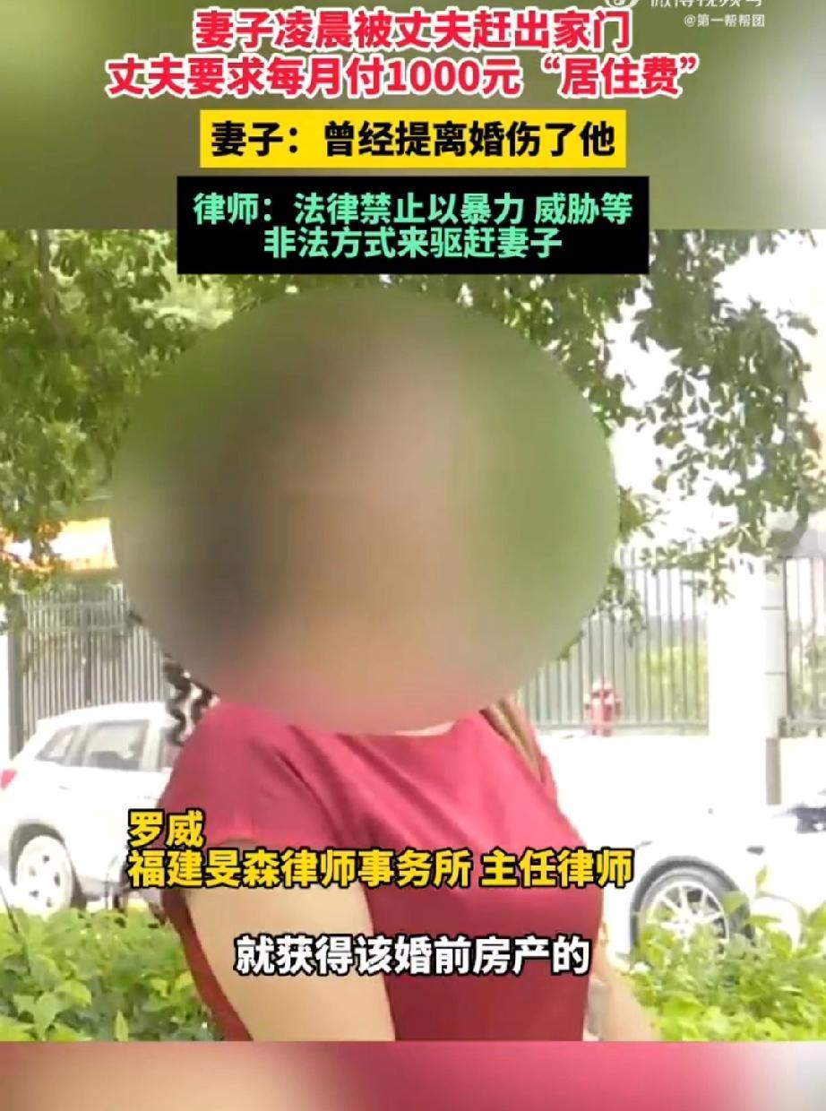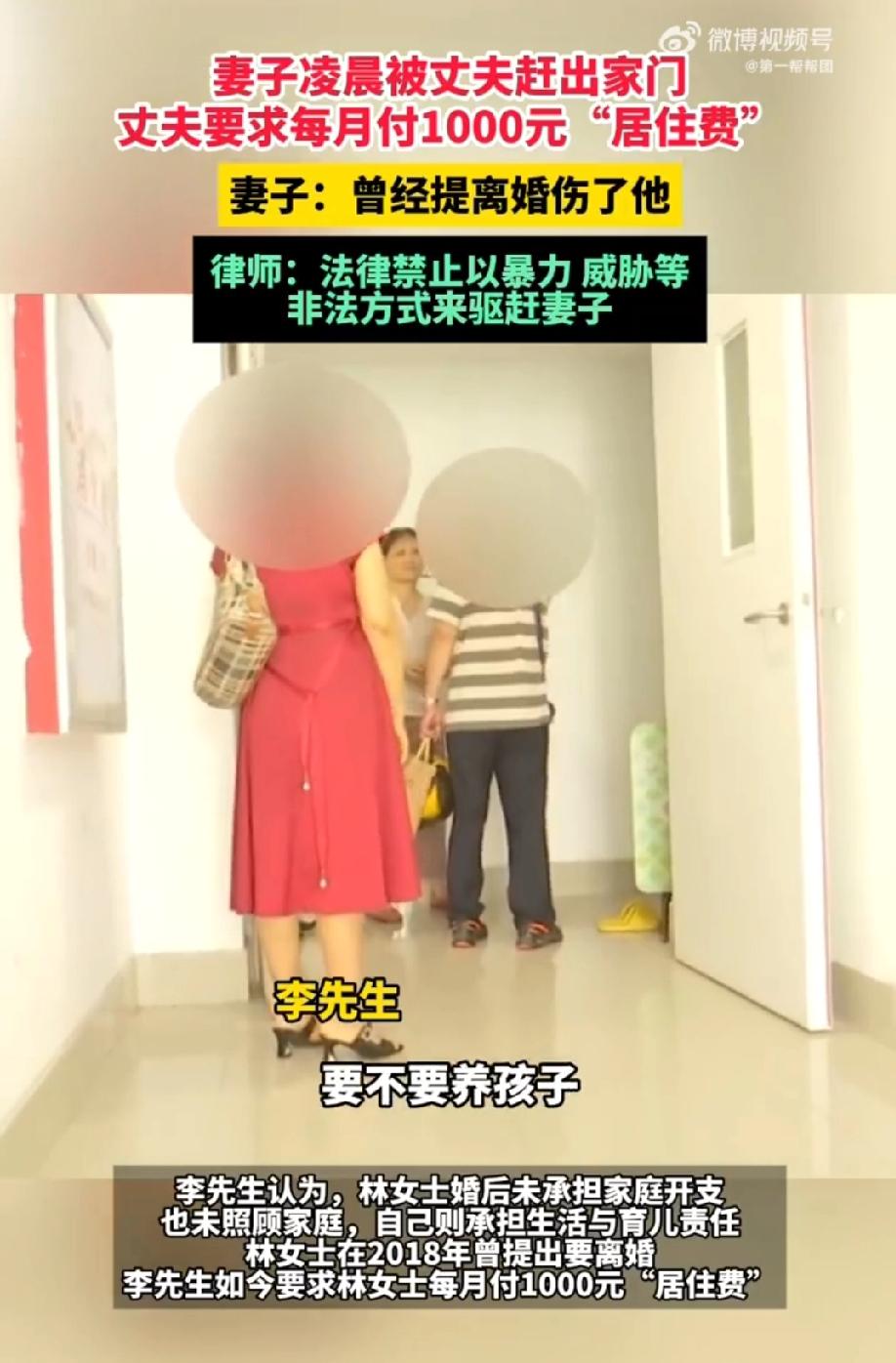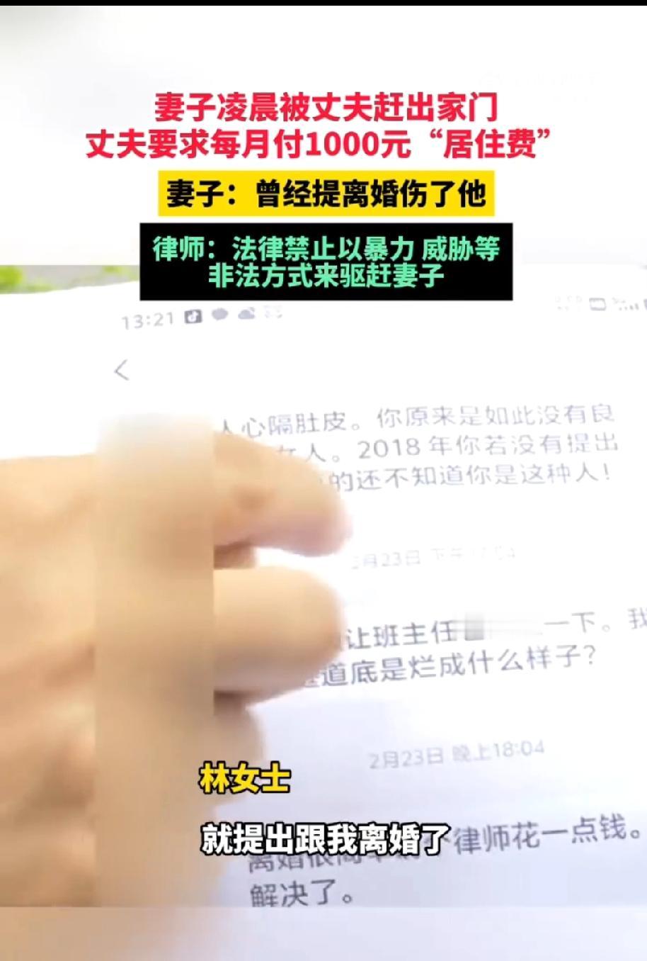 福建,丈夫将妻子的衣物打包,扔到妻子工作的店铺门口,还更换了家中门锁。 丈夫宣称:“你这个月一千块房租都没交,也不出钱抚养孩子,也不做家务,不照顾孩子,2018年还跟我提离婚,让我伤透了心。” 妻子比丈夫小18岁,二人结婚已逾十载。 他们如今居住的房子是丈夫的个人财产,是其婚前获得的拆迁房。 丈夫表示:“她怀孕时,逼我给了十万彩礼才肯结婚。” 而妻子称:“后来我把这十万转给丈夫,当作儿子的抚养费,而且现在这房子我出了23万装修款,还有丈夫写的借条。” 丈夫回应妻子:“借条是我写的,但我没收到23万装修款。” 丈夫要求妻子:补足这个月房租,再每个月给儿子生活费,还要承担家务,才能搬回家居住权。 同在一个屋檐下,妻子竟要给丈夫付房租,实在是闻所未闻。 妻子大概四十岁左右,丈夫也有六十岁了。 丈夫把妻子的衣物扔出门,看似是想逼妻子出儿子的抚养费,实则更像是想逼妻子离婚。 律师称:结婚并不意味着就拥有房子的居留权。丈夫有权不让妻子居住自己的房子,但不能以暴力、威胁的方式驱赶妻子。 婚姻本是双向奔赴的温暖,合则携手共赴岁月长,不和便体面放手各生欢,不纠缠、不勉强,才是对彼此最好的成全。 来源:第一帮帮团