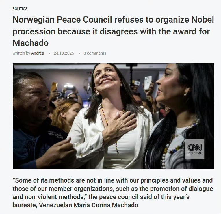 懵逼新闻来了,挪威和平委员会拒绝为马查多组织诺贝尔和平奖庆祝活动,理由是反对她获奖。 挪威和平委员会就是诺贝尔奖评委会,你自己评选的,怎么你又反对? 深究了一下,虽然挪威和平委员会是诺贝尔和平奖的评选机构,但是设计也挺复杂,跟挪威议会之间绕来绕去,理论上确实可以出现评委会反对的人获奖,现在就是理论成了现实。