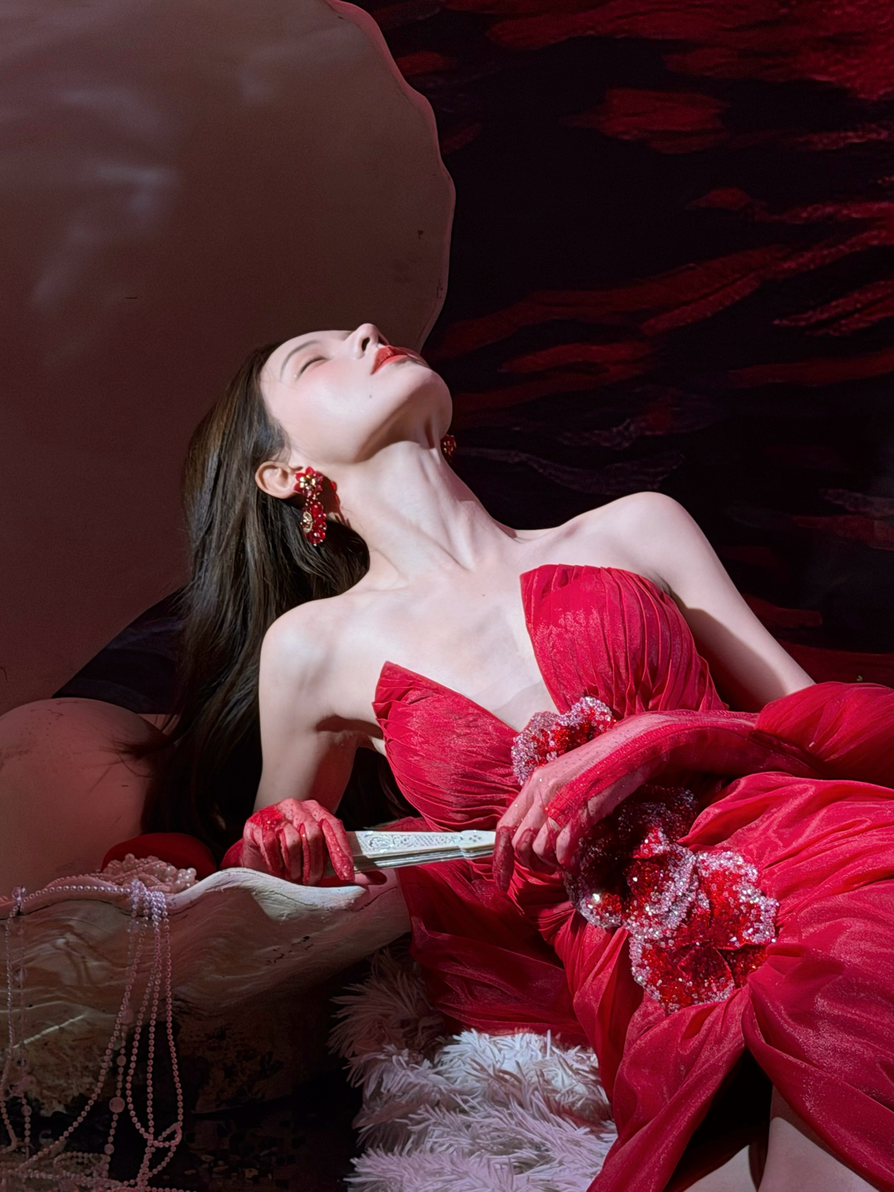 李湘发在小红书上这张图脸p得太过了,感觉像是用力把五官往中间推,和脸的框架都脱离