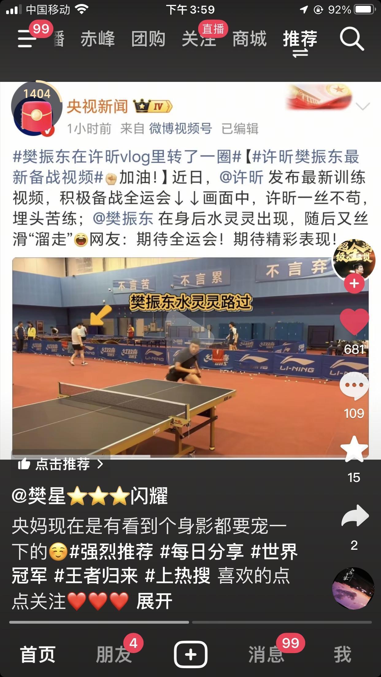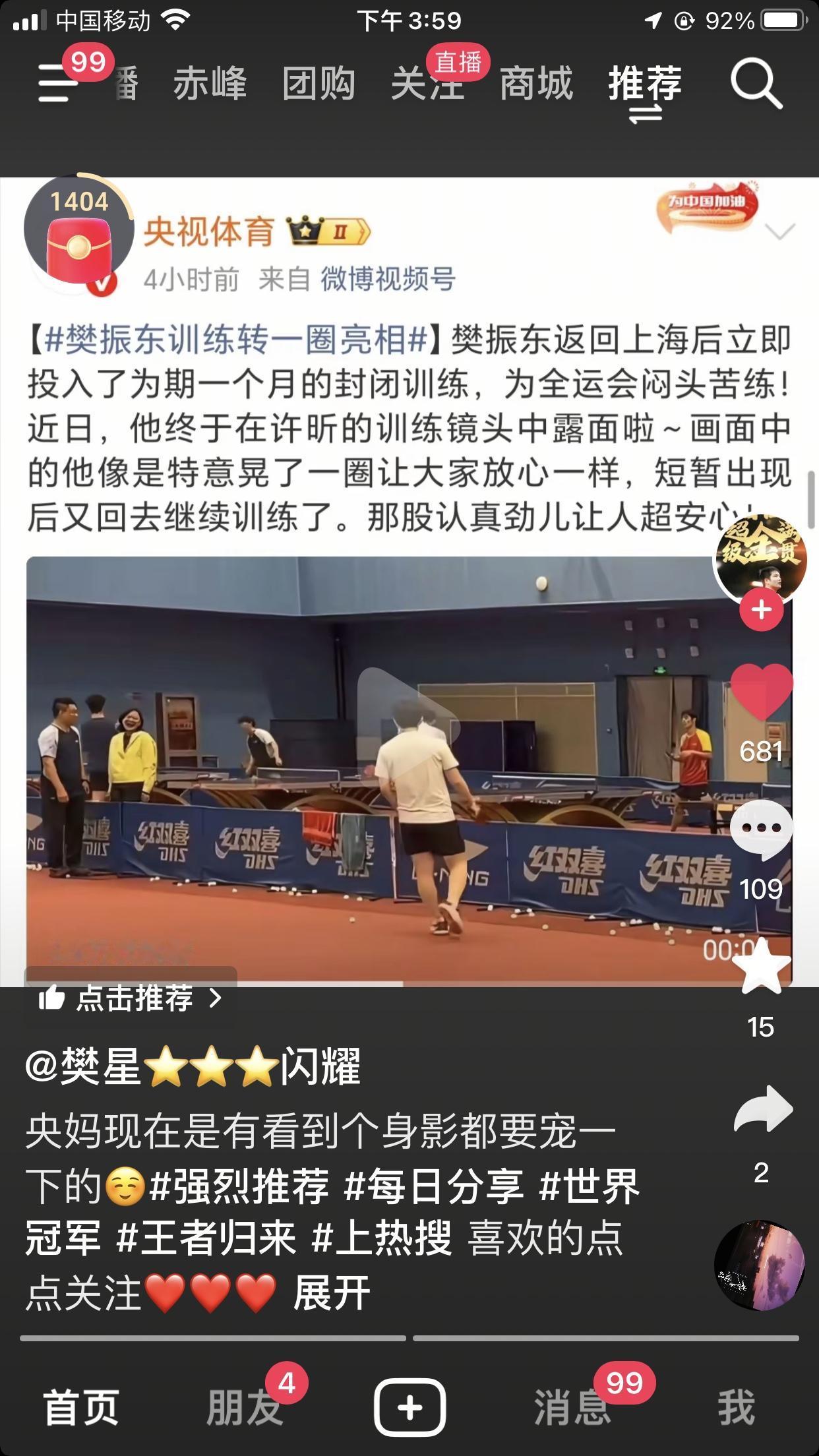 樊振东就这样被溺爱[小鼓掌]。央妈也在许昕的视频中找东哥。央妈现在和我们心情是一样的[捂脸],都想每天看看东东在干嘛[呲牙] 央视体育:樊振东在返回上海后,进行了为期一个月的封闭训练,备战全运会,近日,他终于在许昕的训练视频中出现了。 我猜东哥不小心闯进镜头的,感觉央妈一直在治愈小胖。 小胖东,全运会加油,给我狠狠打,打的他们嗷嗷叫,[捂脸]冠军必须是你的!