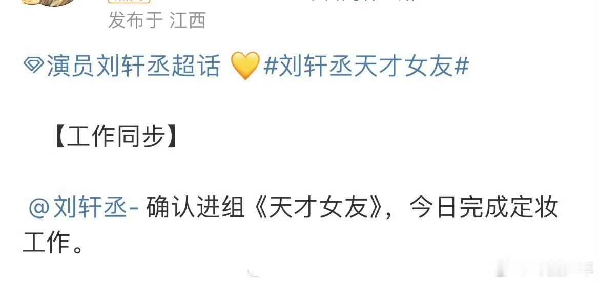 刘轩丞将进组天才少女 刘轩丞要解锁《天才少女》新角色啦!定妆工作已经搞定,想想他可能会呈现的角色状态——是聪慧灵动的模样,还是有独特反差感的设定,都让人充满好奇,毕竟他总能把角色演出自己的风格,这波新剧必须狠狠期待!