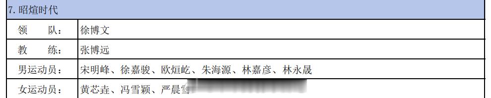 男运动员: 宋明峰、徐嘉骏、欧烜屹、朱海源、林嘉彦、林永晟