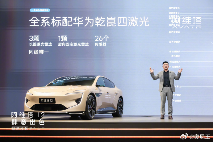 阿维塔12十二项同级独享 想体验最前沿的智能豪华出行吗?10月28日上市的阿维塔12四激光版可别错过。它可不只是名字里有“四激光”,配置上惊喜满满。标配华为四激光雷达,3颗长距搭配1颗高精固态,360度无死角感知,厘米级精度让驾驶超安心。增程版搭载52度宁德时代电池,综合续航超1270km,快充10分钟电量就能从30%到80%。车内豪华感拉满,英国之宝音响、全景远端屏等一应俱全,还有丰富可选配置。产品矩阵更完整,竞争力飙升,限时权益价25.99万起,赶紧冲!