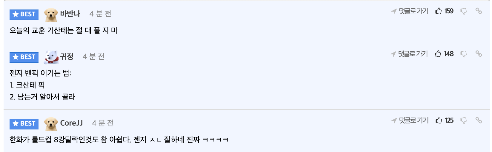 虎扑10月28日讯2025英雄联盟全球总决赛八强第一场比赛GEN以3比1战胜HLE,赛后韩国网友对此展开热议,部分热门评论翻译如下: