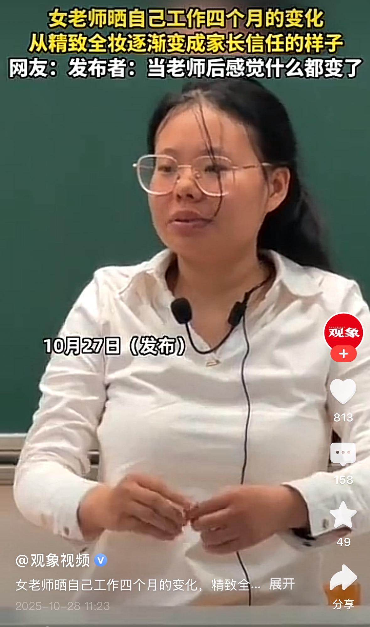 当老师前与当老师后的惊人变化,竟然是同一个人。第一张照片是当老师前的,第二张是当老师四个月后的照片。站在家长的角度还是喜欢第二张照片。感觉这样的老师很靠谱,敬业。事实上老师也不适宜化浓妆,最多化点淡妆。大家觉得呢?