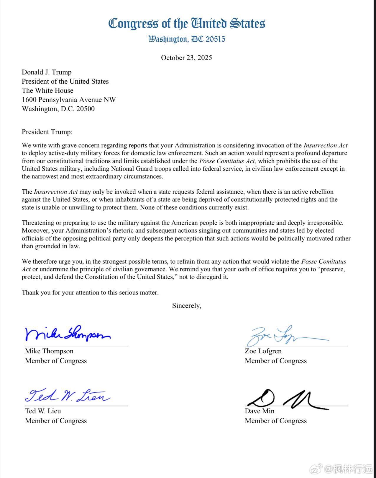 3、在陆军老兵 RepThompson 的带领下,国会退伍军人与其他议员一起谴责特朗普威胁使用军队对付美国人民。