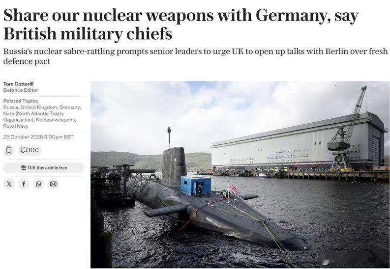 2、电讯报:英国国防部长敦促与德国进行谈判,分享英国的核武器。柏林已与法国就核保护问题展开谈判。