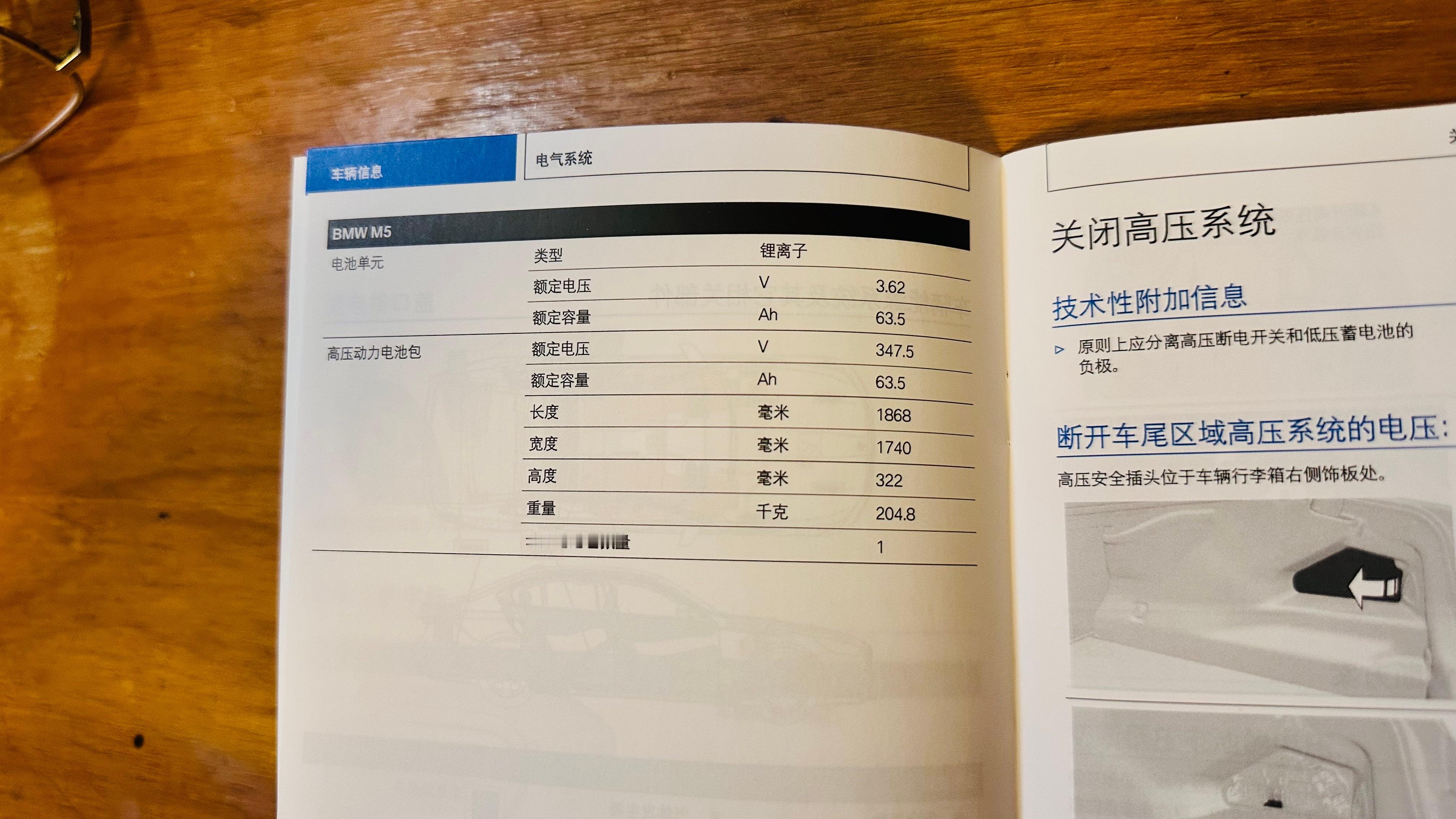 比如四轮定位原始信息等等,比如 M5 这个,还写了蓄电池的具体尺寸,以及质量。这玩意你在外面可查都查不到。还有万一高压系统故障,你应该去剪哪儿的线给高压系统下电,[yeah][yeah][yeah]