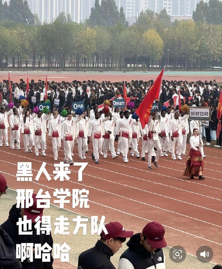 邢台学院运动会上,凡是有黑人留学生参加的跑步比赛,他们从未让冠军旁落过…… 视频中,这位黑人男子起跑的时候还打了一个踉跄,要不然其他选手早就被他超出老远了。看台上的黑人留学生看到自己同胞在场上的精彩表现,也是爆发出阵阵喝彩声。 网友吐槽:都是天赋怪这咋玩啊?干脆直接把冠军颁给他们好了!