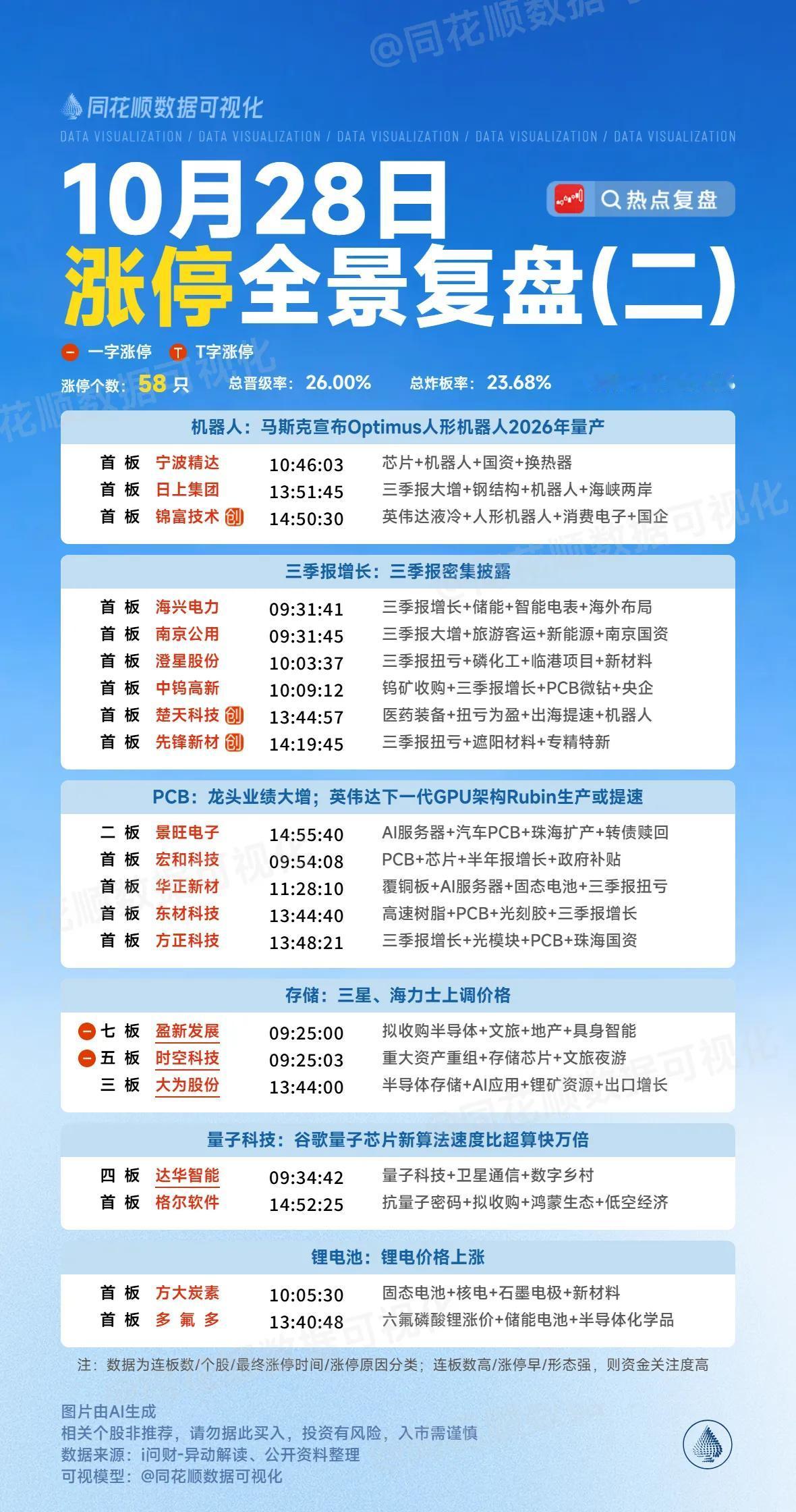 10月28日复盘:安泰科技、多氟多、方正科技、大为股份、达华智能隔日走势的一些看法! 1、安泰科技(可控核聚变) 安泰竞价最后阶段出现了明显的跳空抢筹到8个点的高开,所以开盘是很快有资金强势拉升上板的,与此同时整个可控核聚变方向出现了明显的跟随上涨,另外一只强势股钽业也是有明显的跟随上板,但是午后,大盘和板块都出现明显跳水,安泰出现明显资金砸盘兑现,但是它整体承接是非常强势的,虽然跌破了开盘最低点22.31,但是在这个位置很快出现反弹回封,在反复一次后,出现10亿封单彻底封死涨停,走出了一个高位分歧的缩量连板走势! 盘后的龙虎榜广发向往街买入1.8亿,国联宁波分买入1.7亿,学院南路和两个机构买入都超5千万,卖盘毛老板卖出2.7亿,昨天介入的世纪大道止盈离场,昨天接力的城管希并没有出现在卖盘,整个榜单算是一个非常强的良性换手,实力游资进场接力算是不错的加分项,再加上安泰的辨识度非常高,虽然尾盘出现了砸盘换手但是隔日得预期并不会太差,这只个股隔日冲高问题不大,但是想要连板竞价的强度和板块的共振缺一不可,毕竟这只个股今天整体量能依然没有放出来,隔日如果两个条件都满足,那么它板上的承接依然可以重点关注! 2、多氟多(固态电池) 多氟多开盘后就出现了比较强势的拉升表现,再加上早盘固态电池方向修复明显,多氟多成了明显的前排迅速出现资金做多拉升封板,虽然板上有一定分歧,但是最终还是很快彻底封死涨停板,午后大盘和板块都出现了明显的下杀兑现,多氟多也受到影响出现炸板,但是它下杀后的承接非常好,虽然有所反复,但是最终还是很快封死涨停! 盘后的龙虎榜联储环城北路、海通新建路、湖里大道三个游资席位买入都超过6千万,一个机构也有近1亿的净买入,卖盘主要是机构为主,这样的榜单算是明显游资合力做多的榜单,再加上多氟多放量突破的走势,隔日走出冲高的溢价问题不大,但是多氟多的流通盘毕竟偏大,现在这个市场的量能其实很难支撑它在这个位置连板,隔日除非固态电池方向有超强的板块效应,不然的话,多氟多可能更多的会去走趋势上行的路子! 3、方正科技(PCB) 方正昨天是一个超强的高开兑现走势,今天早盘出现小幅低开,开盘后跟随整个PCB方向走出趋势拉升表现,之后一直在高位震荡,尾盘出现强势资金做多封板,走出了一个比较强势的反包板! 盘后的龙虎榜是3日榜,炒股养家净买入1个亿,新闸路也上榜1.6亿,有没有卖出仓位不得而知,两个强势量化是引导做T资金,这样的榜单是符合趋势股的预期的,方正毕竟流通市值比较大,在现在量能不大的情况下想要走出连板其实是非常困难的,所以资金选择了这种洗盘后的反包,关键是今天PCB方向正好有板块效应,这样的话方正的趋势就能够持续,所以这只个股隔日大概率会有冲高表现,但是估计也仅次而已,这个市值和位置想要走出连板几乎不可能! 4、大为股份(存储芯片) 大为昨天是强势一字板,早盘竞价存储芯片分歧严重,大为最终只高开5个多点,但是2.23亿的成交额算是有资金在做非常强的承接,所以在开盘板块没有持续下杀的情况下,它出现明显的资金做多拉升封板,虽然在板上还有分歧,但是最终还是稳稳的在早盘彻底封死涨停,但是午后它也跟安泰、多氟多差不多的时间出现炸板,既然早盘资金都选择了强封,这个位置也不例外,最终还是很快彻底封死涨停板,走出了高位的放量换手连板走势! 盘后的龙虎榜财神殿南路和国联宁波分两个关联席位一起买入1.4亿,广发金融中心也有7千万,卖盘多为量化等获利盘止盈,这是明显强势游资接过获利盘筹码的榜单,大为今天实际换手达到了51%,这说明筹码置换非常充分,这对于一只辨识度非常高且有板块效应的强势股来说并不是坏事,至少隔日走出冲高问题不大,但是想要连板,至少存储芯片方向要有一定修复,毕竟没有板块效应支撑的话,大为这个位置想要持续走出来还是有难度的,并且它竞价的表现至少要有明显的弱转强! 5、达华智能(量子科技) 达华竞价高开近8个点的表现是非常强势的,相比于昨天三板的竞价还要强,所以开盘后虽然出现分歧抛压,但是在支撑明显的情况下很快出现资金快速拉升封板,在板上反复一次后彻底封死涨停,之后再也没有出现抛压,走出了一个比较强势的放量换手4板形态! 盘后的龙虎榜是3日榜,财神殿南路、东亚苏州分、平安曙光路是主要的做多游资席位,桑田路止盈离场,前面两板介入的资金几乎全部兑现离场,这样的榜单算是非常良性的换手,很明显是实力游资接过量化和小游资的筹码,再加上带他今天的形态是非常强的,隔日继续强势下去的概率还是非常大的,可惜今天盘后的三季度业绩并没有太大的亮点,这样的话对于它隔日可能会产生一定影响,但是只要量子科技方向整体还有板块效应的话,达华的表现还是比较值得期待的! 文中的内容仅为分享和交流,不作为实际操作建议!