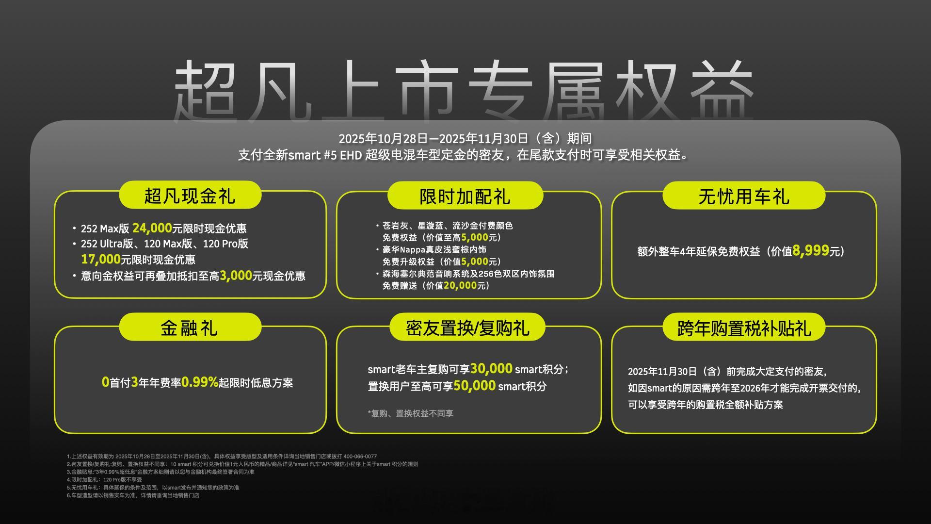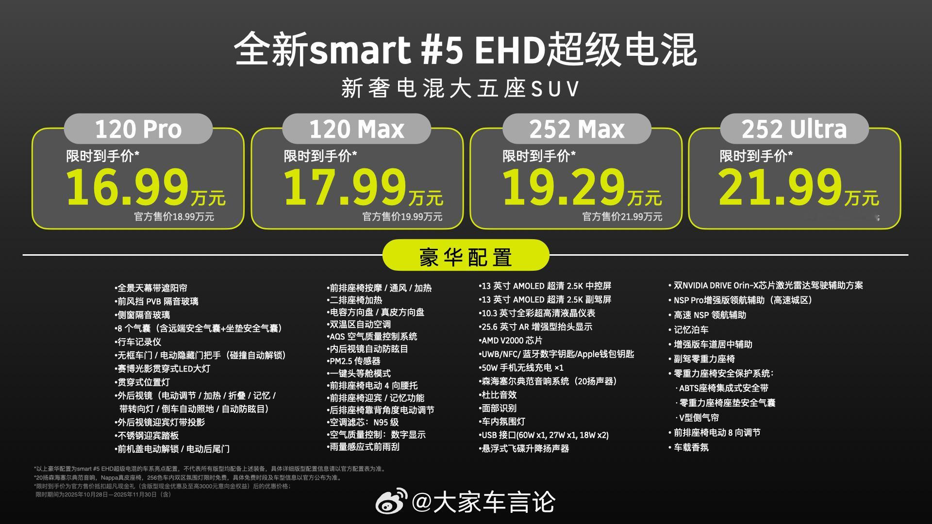 smart 精灵5号 EHD超级电混正式上市,限时16.99w起。
