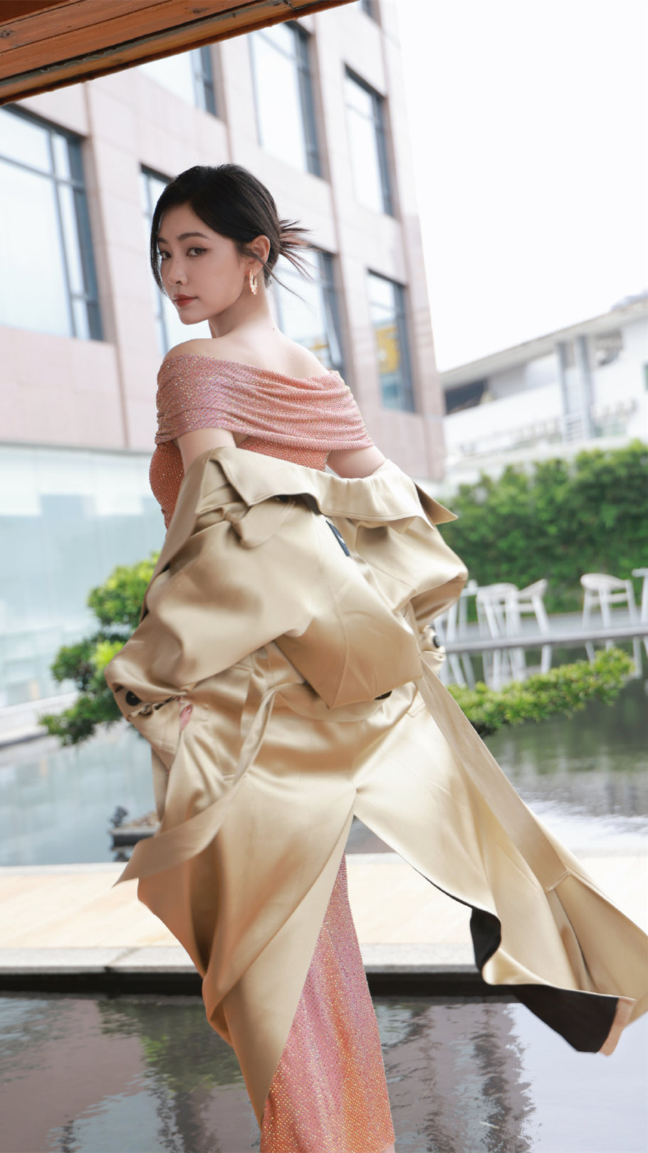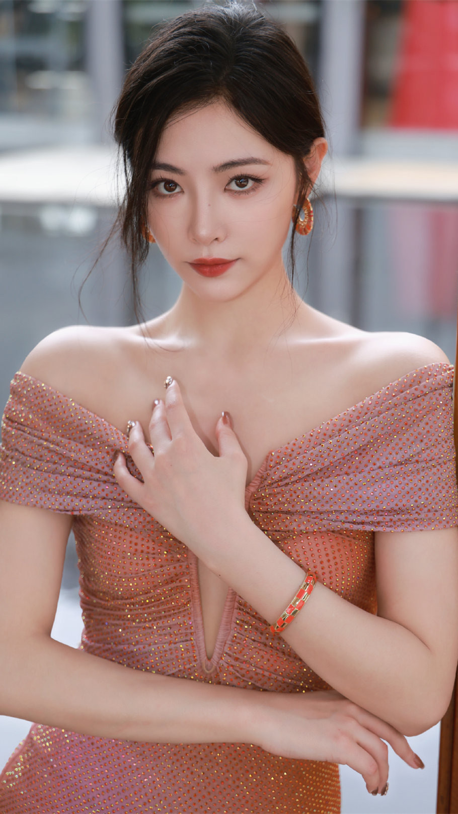许佳琪壁纸:金红色抹胸裙,尽显婀娜姿态