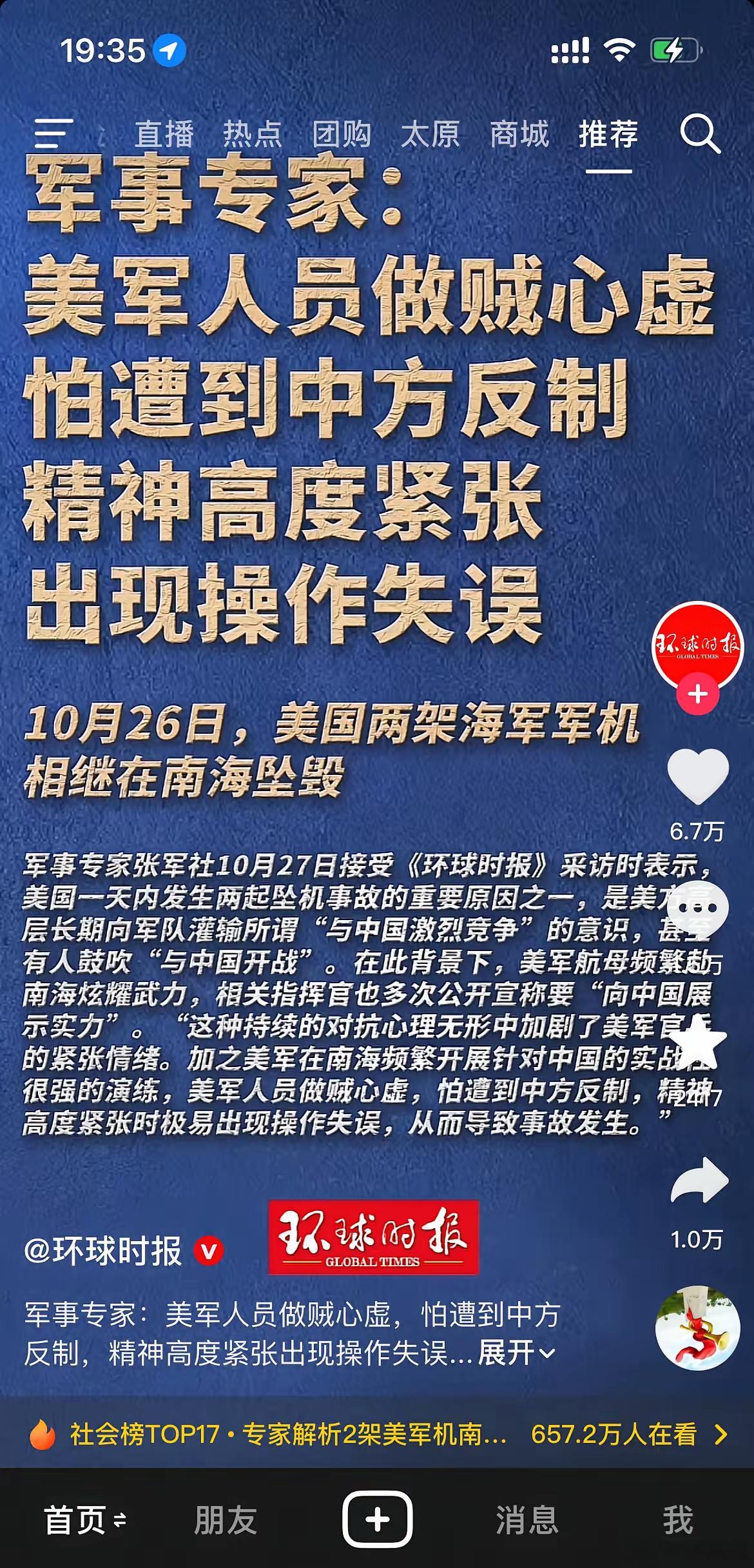 坠机纯粹因为老美自己操作失误,与我们一点关系都没有。正好我们不想逞这个强,老美也不敢在世界面前示弱