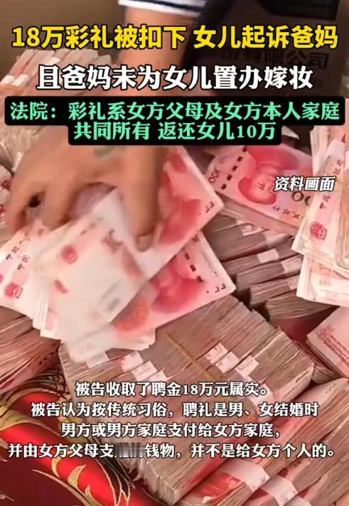 浙江台州,一女子结婚时收了男方18万元彩礼,交由父母保管。可婚后女子发现丈夫家并不富裕,于是要求父母把彩礼拿出来补贴家用,谁知竟遭到了拒绝,就连女子生孩子住院急用钱,父母也一分钱都不肯拿出来。心寒之下,女子将亲生父母告上了法院,要求归还这18万元彩礼,然而父母却辩称这彩礼是给二老的补偿,不同意归还。(来源:齐鲁晚报,黄岩区人民法院) 张女士与丈夫林先生是经媒人介绍认识的,在二人相处一段时间后,觉得对方都比较适合,于是向着谈婚论嫁继续发展。 在二人准备结婚时,林先生的父母拿出了18万元的彩礼,这已经是他们能拿出的极限了,留给自己的只能刚够日常生活所需。 考虑到自己的家庭条件,二人结婚时没有办婚宴,张女士家也没有置办嫁妆,二人就这么简简单单那领了结婚证。 婚后小两口的感情一直不错,张女士为林先生生了女儿。可是在怀孕到生产期间,全都是林先生一家在掏钱照顾张女士。在生完女儿后,张女士的父母就给了8800元,这让张女士感到十分气愤。 自从女儿出生后,家里的开销更大了,林先生虽然在努力挣钱,但日子还是过得紧紧巴巴的。 期间,张女士的父母虽然陆续给过一点生活费,但那只是杯水车薪。张女士心疼林先生早出晚归的工作,所以多次向父母开口要那18万元的彩礼。 张女士认为,这彩礼本来就是为结婚准备的,现在自己的家庭有困难了,父母应该把钱拿出来。 可父母的态度十分坚决,一口咬定这钱是林家对他们养大女儿所付出的补偿,所以十分冷漠地拒绝了张女士。 张女士彻底感到了什么是:“嫁出去的女儿,泼出去的水。”于是她将自己的亲生父母给告上了法院,要求他们归还18万元的彩礼。 在法庭上,张女士表示彩礼是以缔结婚姻为目的的赠与款,所以这18万元的彩礼应当属于丈夫对自己的赠与款,并不是给父母的,毕竟嫁女儿不是卖女儿。 《民法典》第1042条规定,禁止包办、买卖婚姻和其他干涉婚姻自由的行为。禁止借婚姻索取财物。 由此可见,张女士的意见还是有理有据的。 可是张女士的父母却表示,按照传统的习俗,彩礼是由男方给女方家庭的补偿,是对养育女儿长大的补偿,所以并不是给女儿的。 此外,之所以在女儿出嫁时没有置办嫁妆,是因为他们没打算办婚宴。 双方各执一词,互不相让。 法院经审理后认为,法律上并没有明确规定彩礼的赠与对象是谁。但从传统习俗来看,彩礼的确是赠与女方父母的,自古以来都是如此。 但随着社会的进步,彩礼习俗也随之出现了转变,现在的彩礼更多的是被认定对女方的赠与,即包含了张女士以及张女士的父母。 因此,张女士也享有彩礼的份额,而不是都归其父母所有。 《关于审理涉彩礼纠纷案件适用法律若干问题的规定》第5条规定,双方已办理结婚登记且共同生活,离婚时一方请求返还按照习俗给付的彩礼的,人民法院一般不予支持。但是,如果共同生活时间较短且彩礼数额过高的,人民法院可以根据彩礼实际使用及嫁妆情况,综合考虑彩礼数额、共同生活及孕育情况、双方过错等事实,结合当地习俗,确定是否返还以及返还的具体比例。 虽然张女士和林先生并没有打算离婚,但按照法律规定和传统习俗,林先生在支付彩礼后,张女士家应当准备嫁妆,不能因为没有置办婚宴,就省去了嫁妆的步骤。 此外,由于林先生家支付了彩礼后,导致其与张女士生活拮据,这说明这部分彩礼的支出已经对林先生和张女士的夫妻生活,以及对林先生父母的生活造成了一定的影响。 综上来看,法院认为张女士的父母应当退还部分彩礼。 最终,法院酌情判决由张女士的父母归还张女士10万元彩礼。 目前,判决已经生效,张女士也收到了10万元彩礼钱。不过,这10万元其实维持不了多久,张女士和林先生要想把生活过好,还是得努力赚钱的。 对于本案,您有什么看法?欢迎留言交流。
