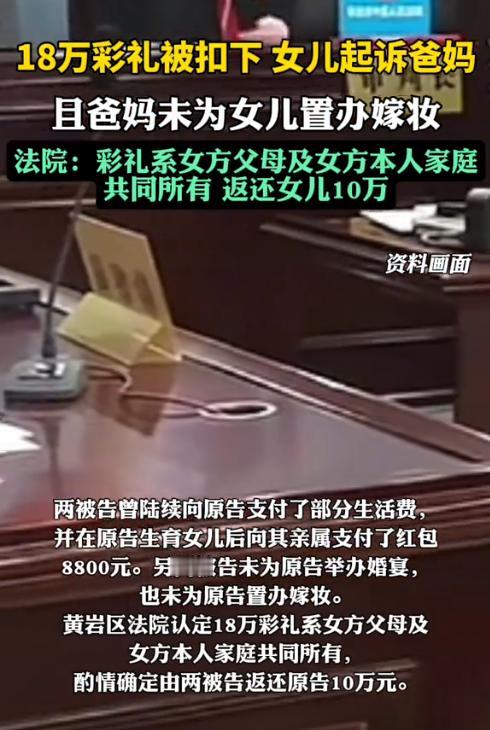 浙江台州,一女子结婚时收了男方18万元彩礼,交由父母保管。可婚后女子发现丈夫家并