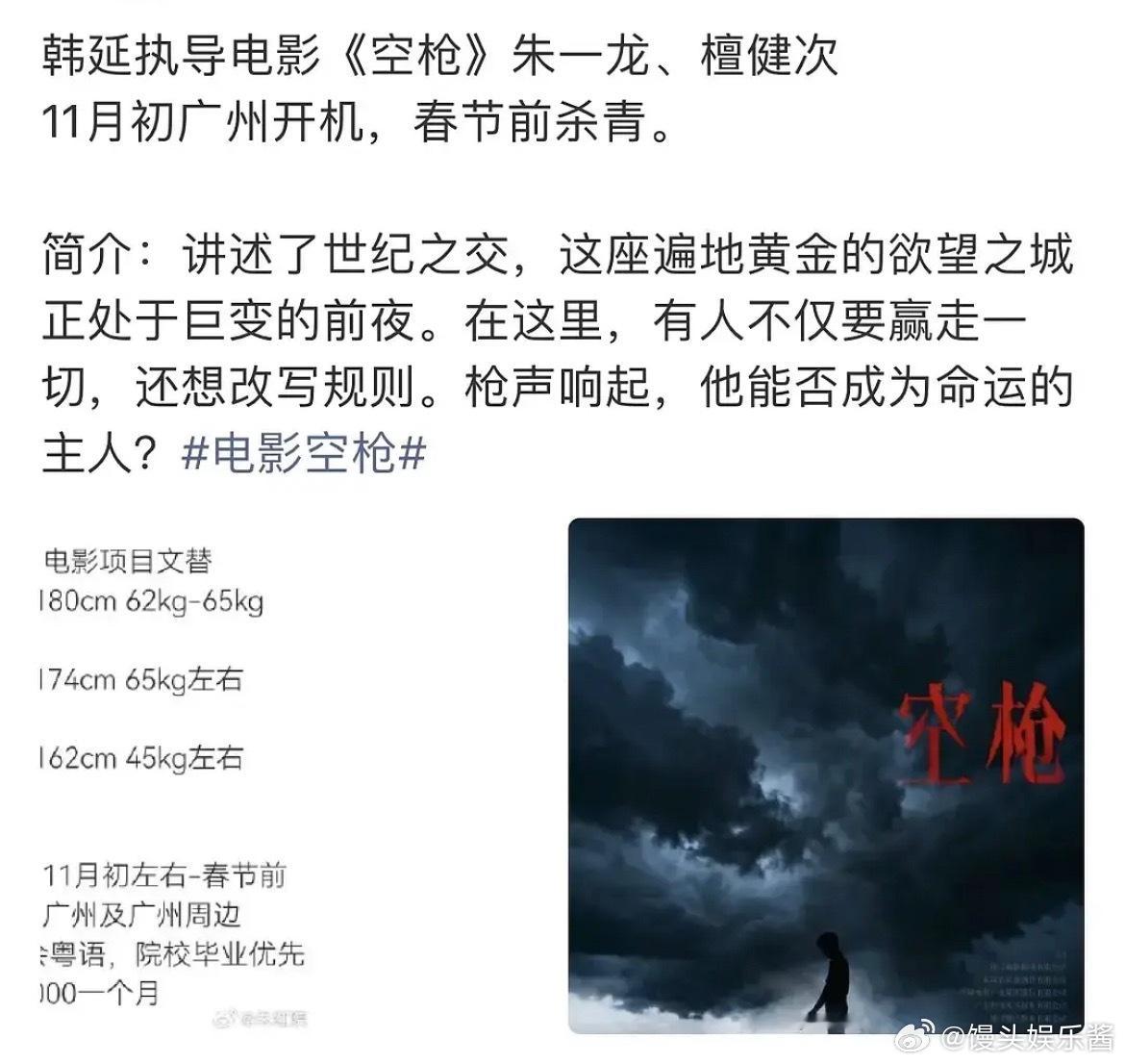 朱一龙、檀健次《空枪》要来了,女主是谁开始找替身了[哆啦A梦吃惊]