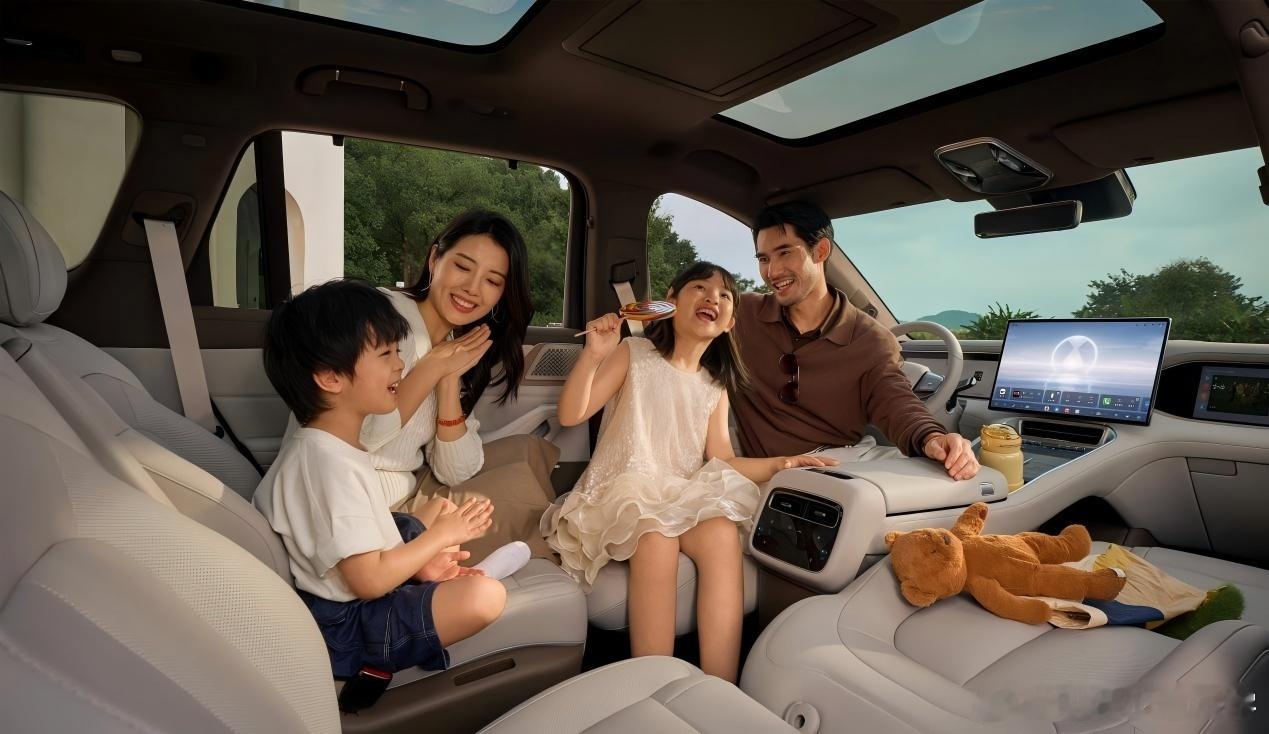 空间是真的顶!车长超5米2,车内套内面积6.11㎡,三排座坐满6个1米8的人都不挤,第三排还能调角度、前后挪,跟前排一样舒服。上车也方便,解锁自动降5cm,老人小孩不用踮脚。