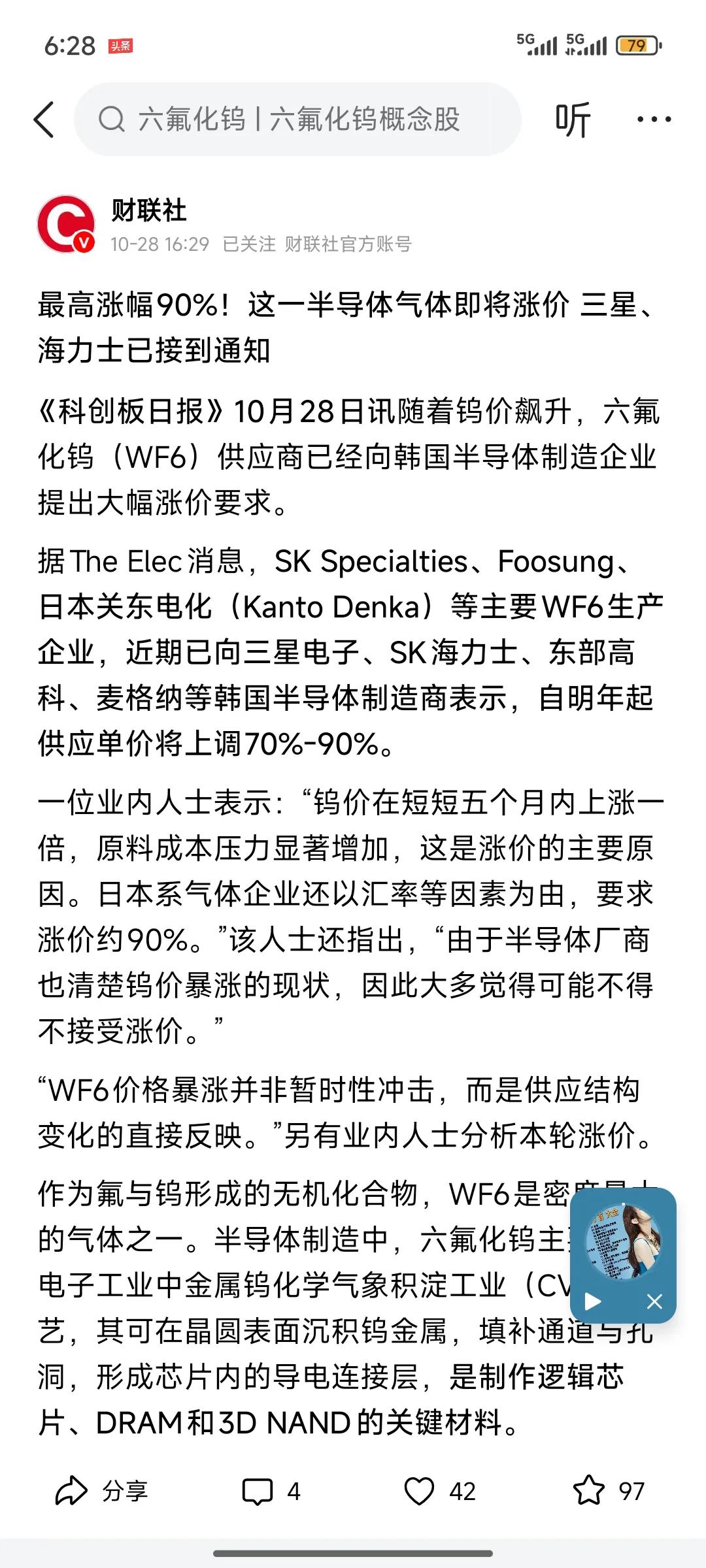 不久前,存储芯片刚经历了一波涨价炒作,昨天又有消息传出,半导体气体中的六氟化钨、