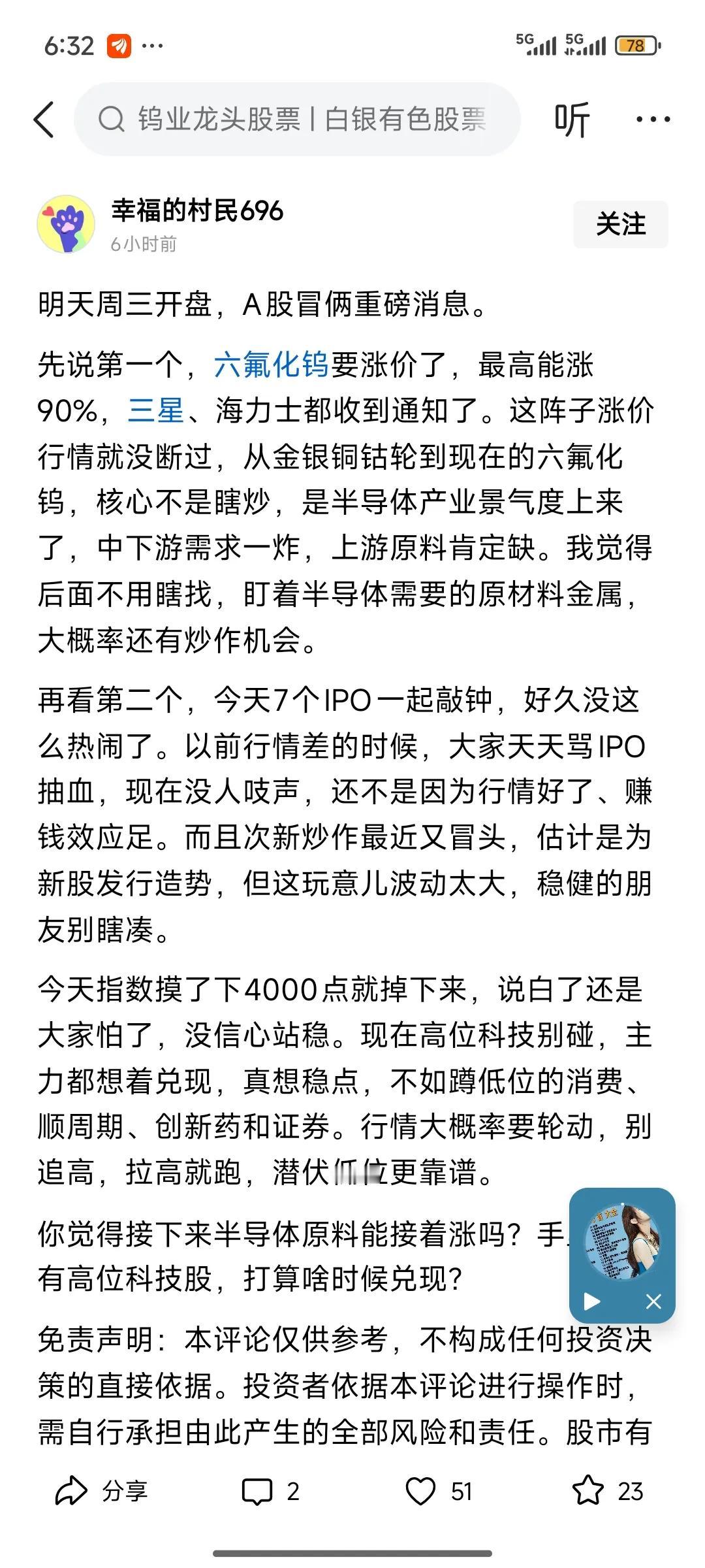 不久前,存储芯片刚经历了一波涨价炒作,昨天又有消息传出,半导体气体中的六氟化钨、三氟化钨明年预计涨价90%。这些都与半导体产业链息息相关,可见半导体产业链的景气度正逐步回升。 如此一来,与半导体相关的产品都将迎来一波涨价与炒作热潮。接下来,我们可以顺着这个逻辑进行分析。此前是半导体存储芯片涨价,如今已蔓延到半导体相关的特殊气体,那么后续会是半导体的哪些零部件或特殊组件迎来涨价呢?我们需按照这一逻辑去探寻、挖掘,并提前布局操作。 半导体 存储芯片概念股 存储芯片行情 半导体板块 半导体行业指数 半导体行情 半导体市场分析